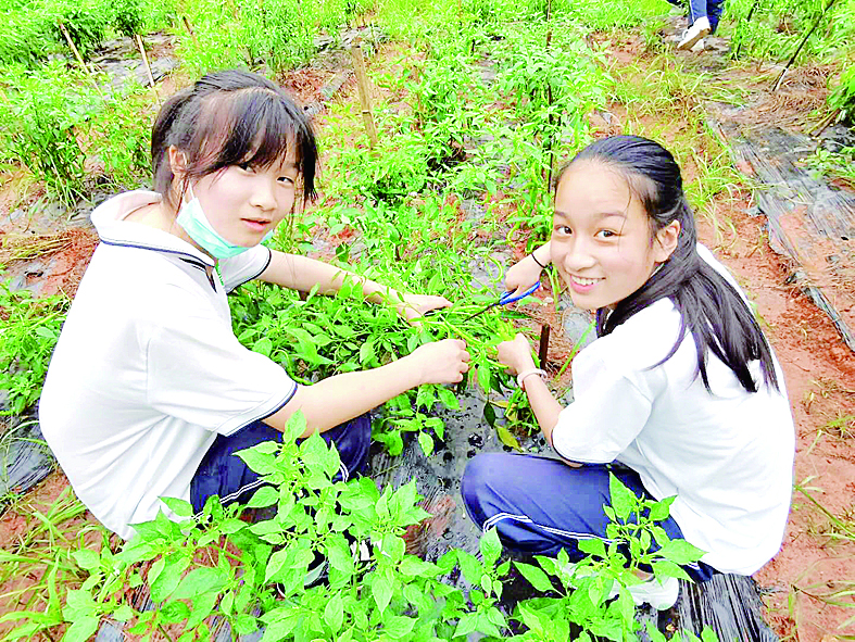 同学们在田间体验蔬菜种植与采摘。 记者/戴凛 摄