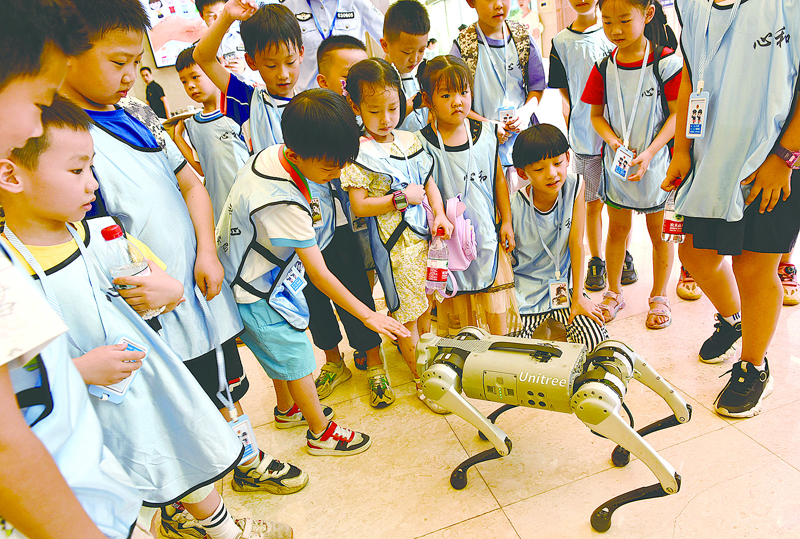 “哇!好酷!”随着一声惊呼,孩子们将一台造型奇特的机器电子狗围了起来。在警察叔叔的操控下,电子狗灵活地向前后左右踏步,并表演出高难度动作。孩子们一边观看,一边提出天马行空式的问题。