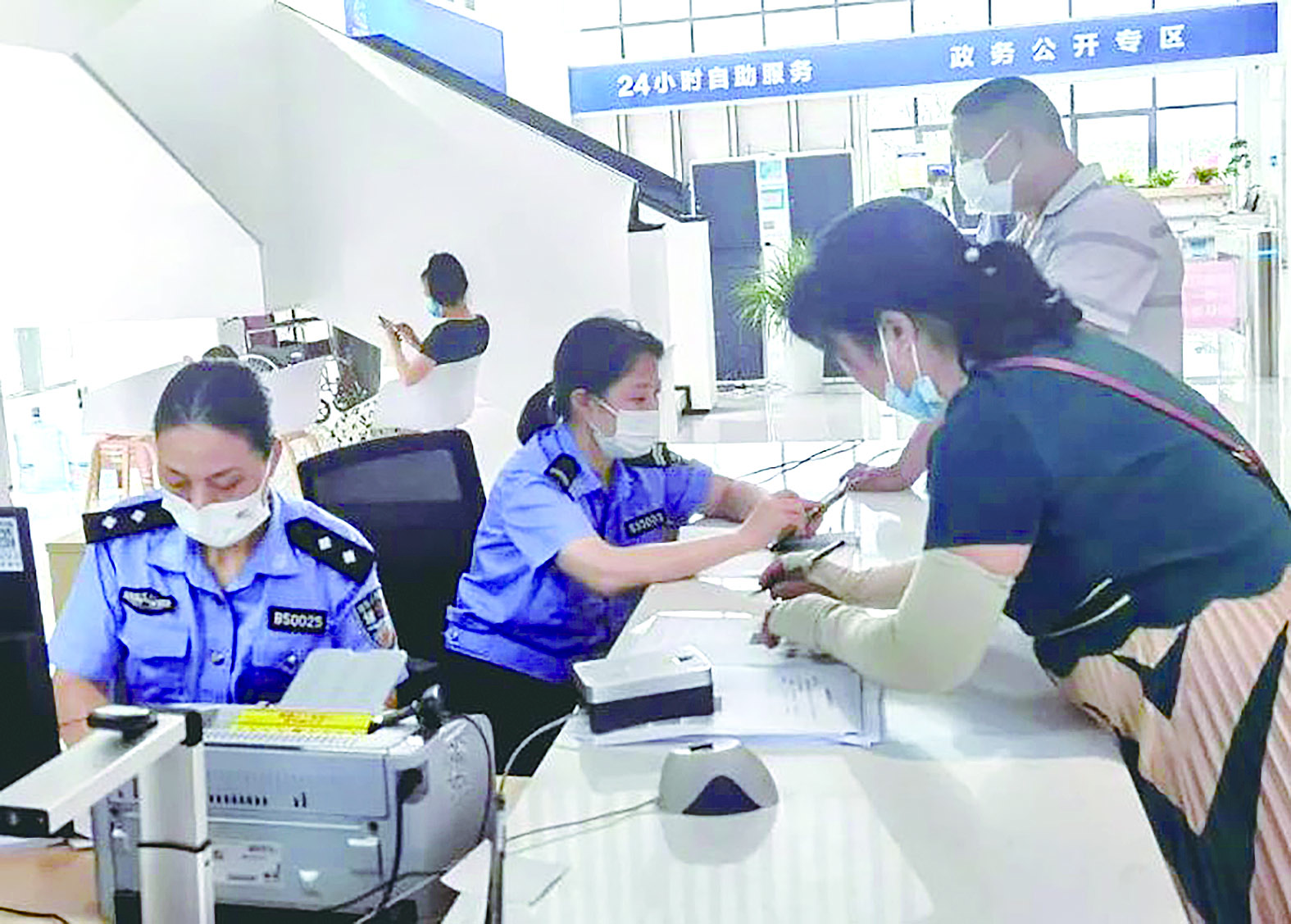 根据上级安排,进驻区政务服务中心的公安办事窗口有10个、民辅警为15人,办公面积有500余平方米。渌口公安分局对标进驻清单进行了全面梳理,做到了“应进必进”,进驻的68项公安业务涉及户政、出入境、交警业务办理,以及部分网安、治安等部门业务办理。在这里,群众可在大厅“一站式”办理公安业务,公安机关通过多部门、多警种联合办公,真正实现“一件事一次办”。