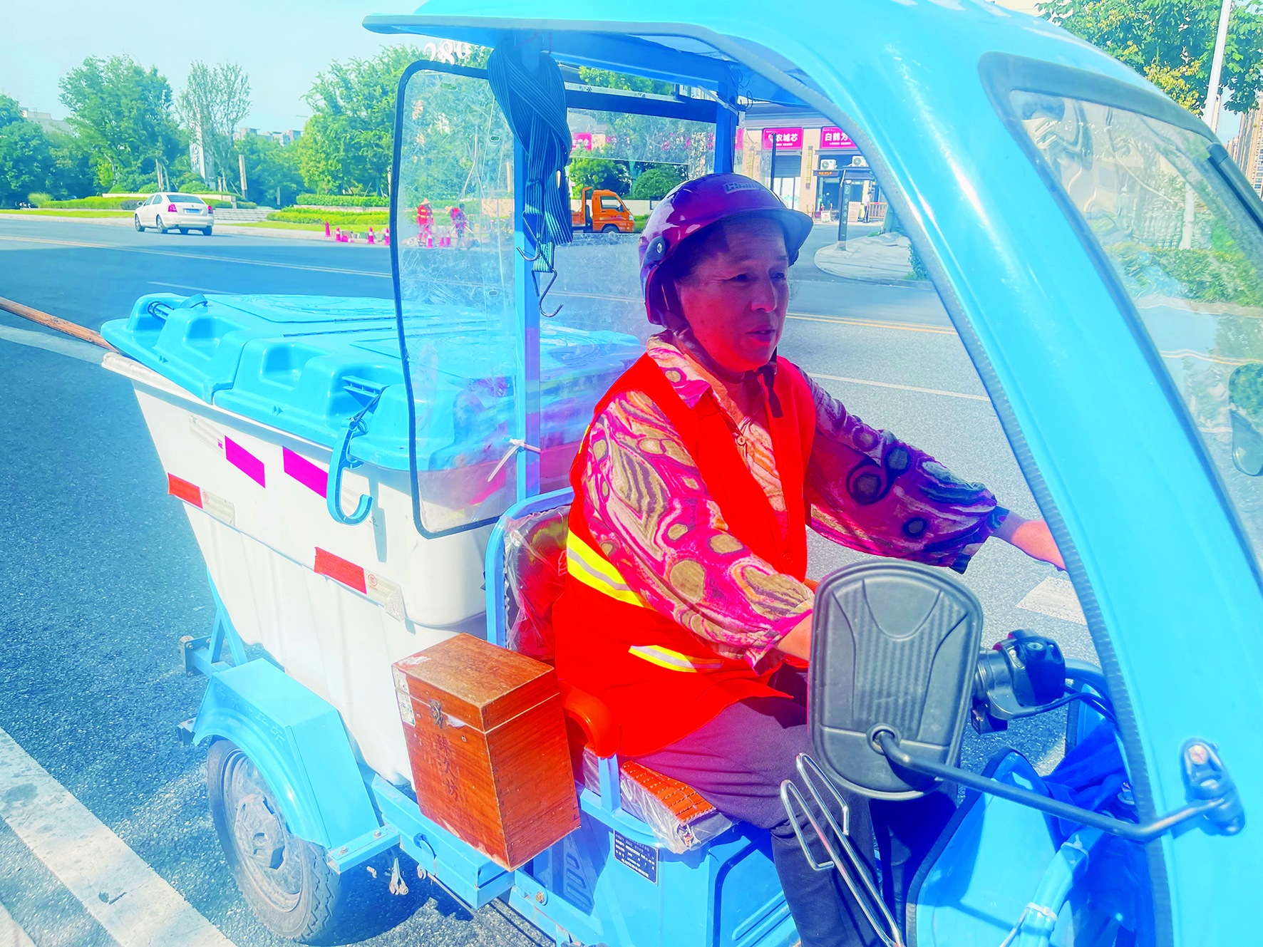 天元区的环卫工人黄爱清开着电动保洁车工作。 株洲日报全媒体记者/伍靖雯 摄