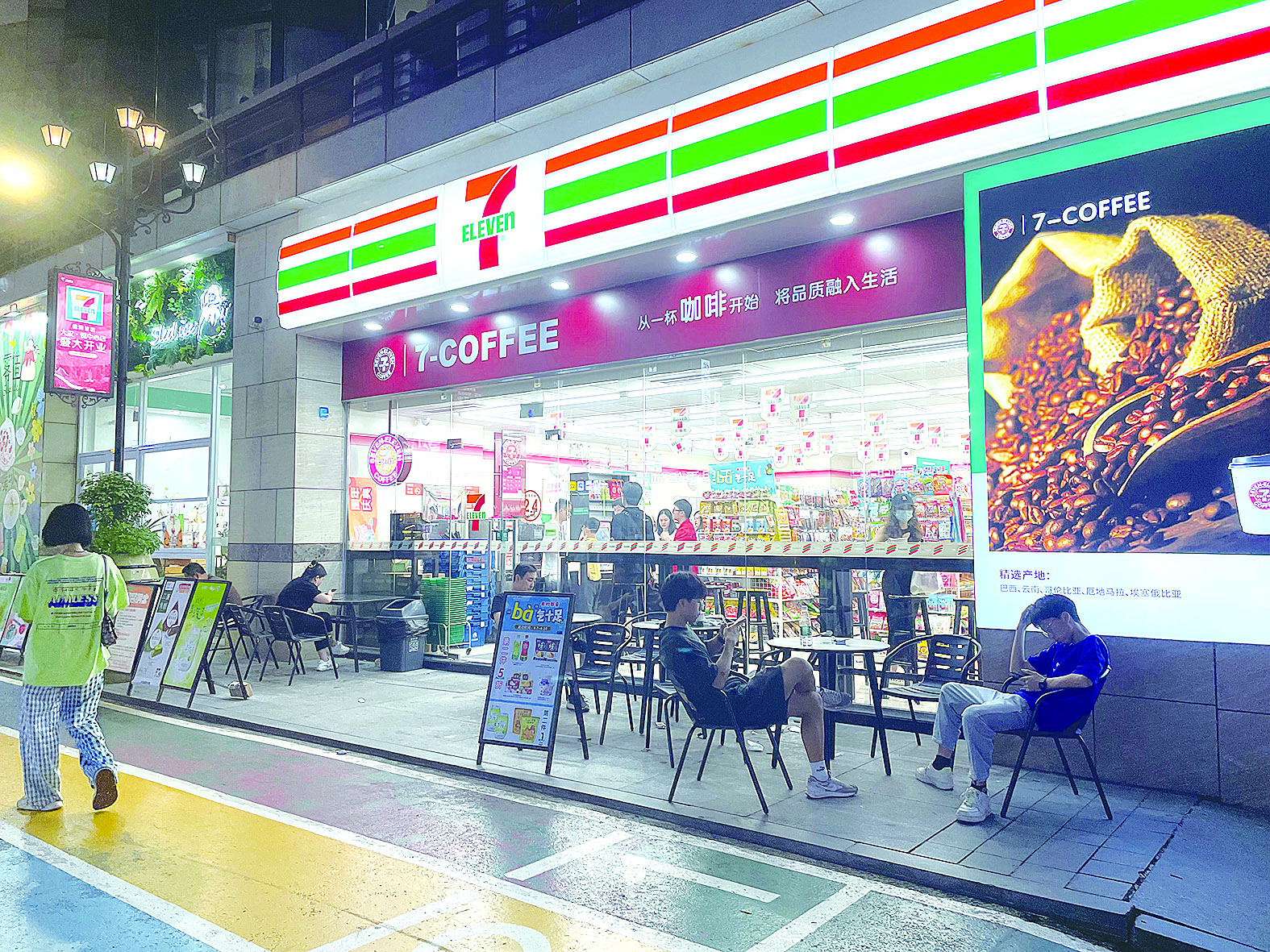 7-ELEVEn门口,有年轻消费者悠闲地玩着手机。 株洲日报全媒体记者/任远 摄