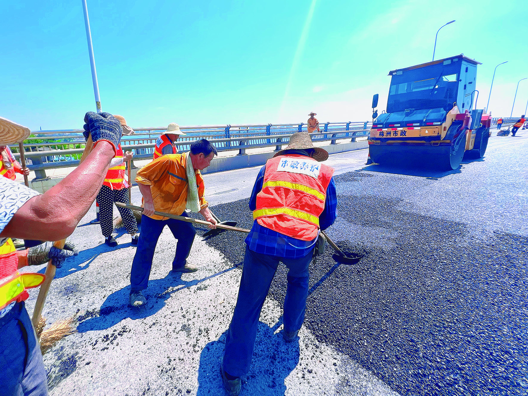 作为我市向南融城的重要跨江通道,渌口大桥往来车辆与日激增。与此同时,连续的高温天气,沥青路面容易因暴晒出现坑洞和车辙。“对于我们来说,这段时间也是一年中工作最紧迫的时期。”鸥正中说,必须得趁着夏季多干活,保障每一条市政道路平坦通畅。