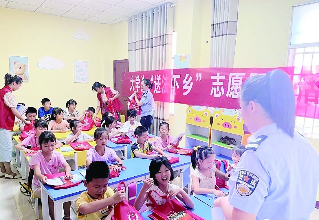 近日,炎陵县司法局联合团县委组织返乡大学生走进“七彩假期”夏令营,开展“送法下乡”志愿服务活动。暑假期间,市司法局还将继续组织返乡大学生志愿者深入村(社区)开展普法活动,引导更多的大学生投身普法实践。