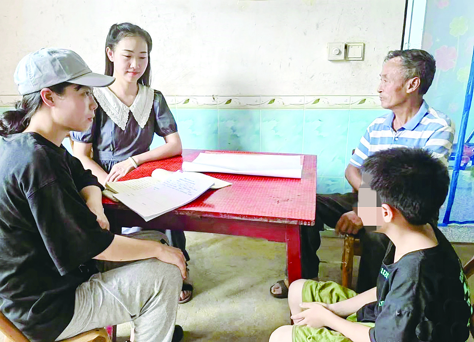 严塘中心小学的老师上门与学生和家长交流。 通讯员 供图