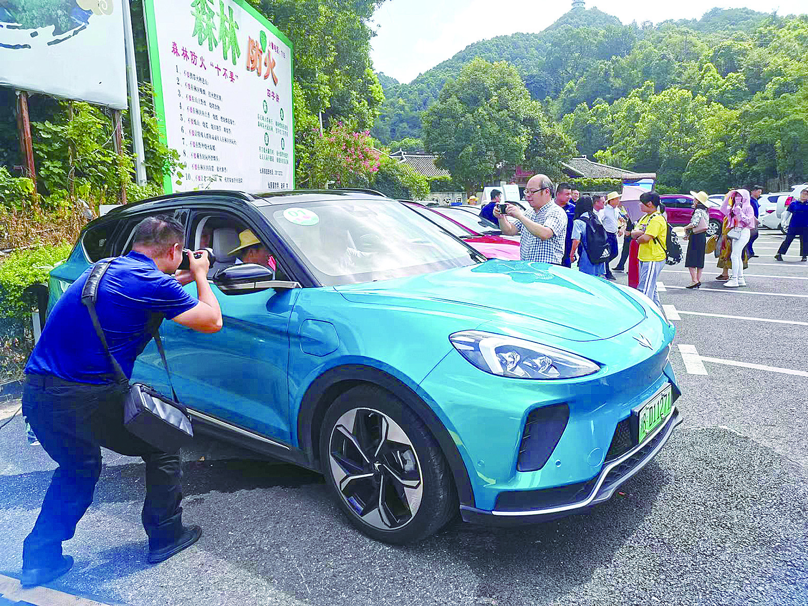 新能源汽车成村民围观的主角。 株洲日报全媒体记者/肖捷 摄