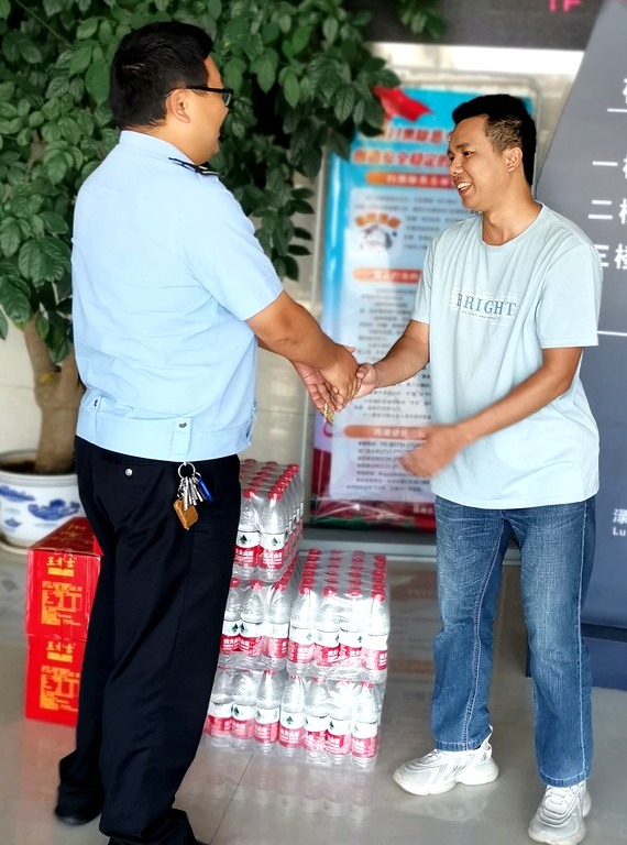 炎炎夏日送清凉,丝丝关怀暖警心。7月26日,渌口公安分局交警大队四中队驻地,辖区群众给民辅警送来山泉水、凉茶等消暑降温饮料,为他们在高温下的坚守点赞,并叮嘱他们做好防晒降温措施,注意自身安全。