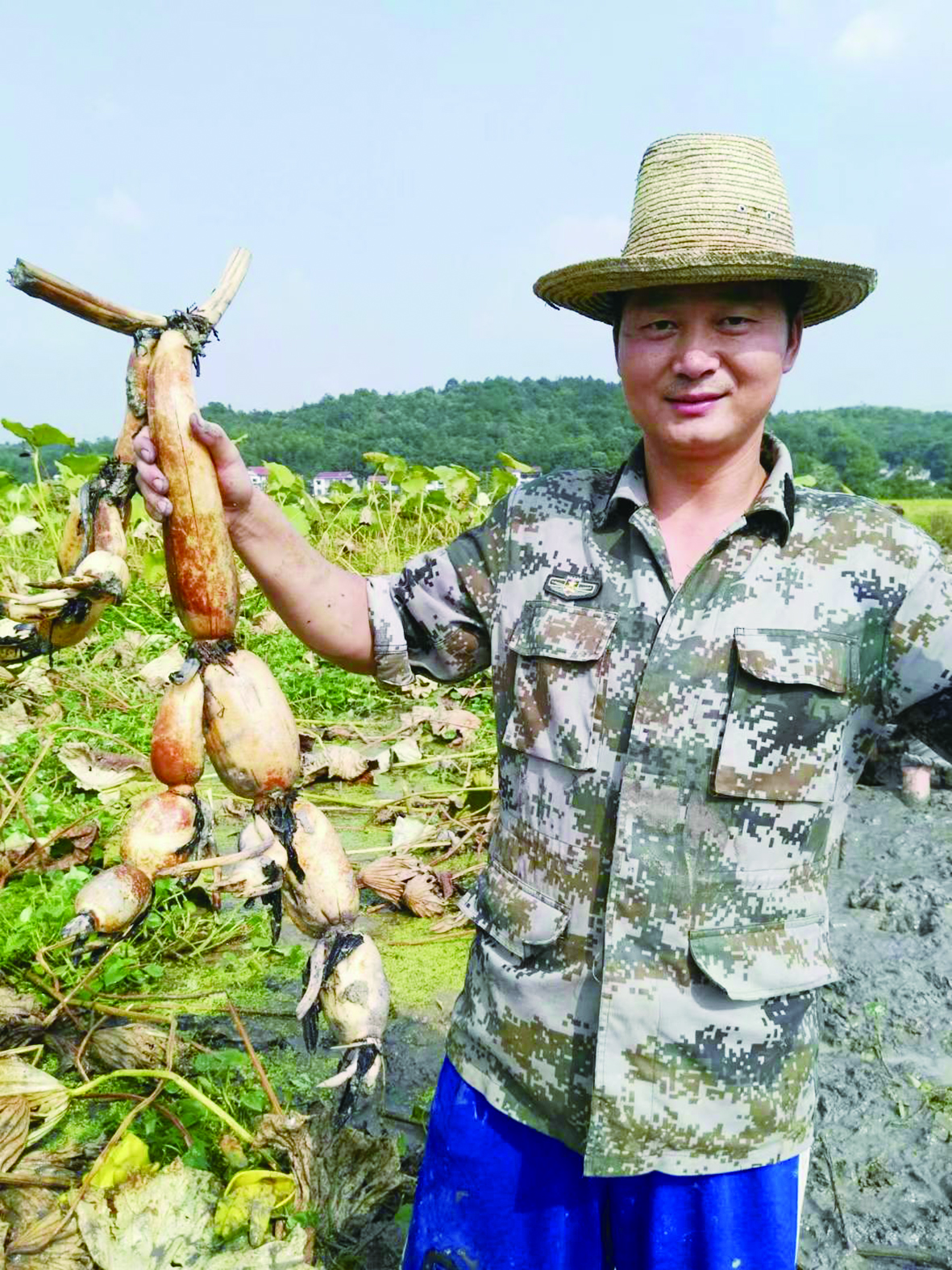 李学文展示莲藕。 受访者 供图