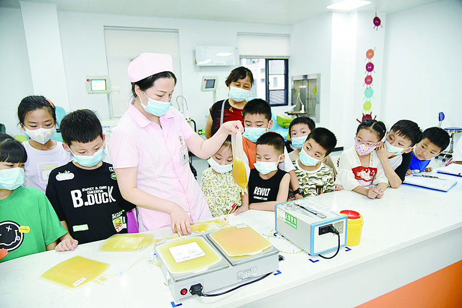 在血站工作人员的带领下,孩子们实地了解了血液从采集到分离、检验再到储存发出的全流程。