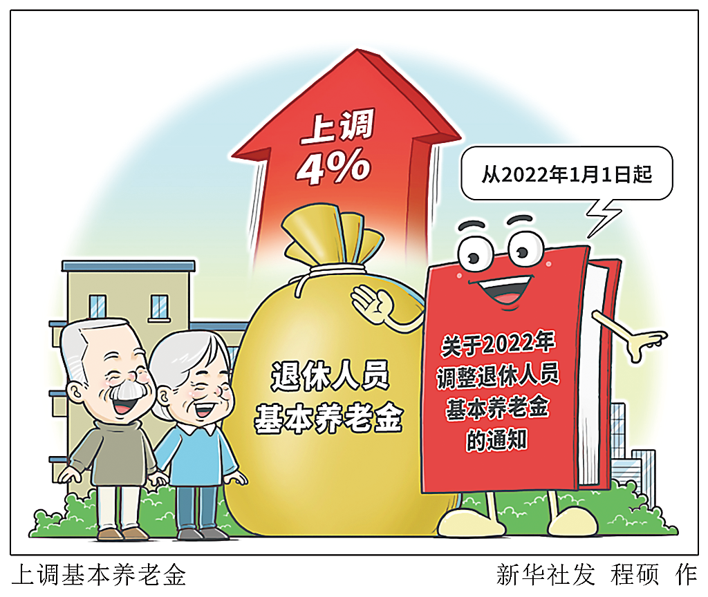 今年5月,人力资源和社会保障部、财政部联合下发通知,明确从2022年1月1日起,为2021年底前已按规定办理退休手续并按月领取基本养老金的退休人员提高基本养老金水平,总体调整水平为2021年退休人员月人均基本养老金的4%。