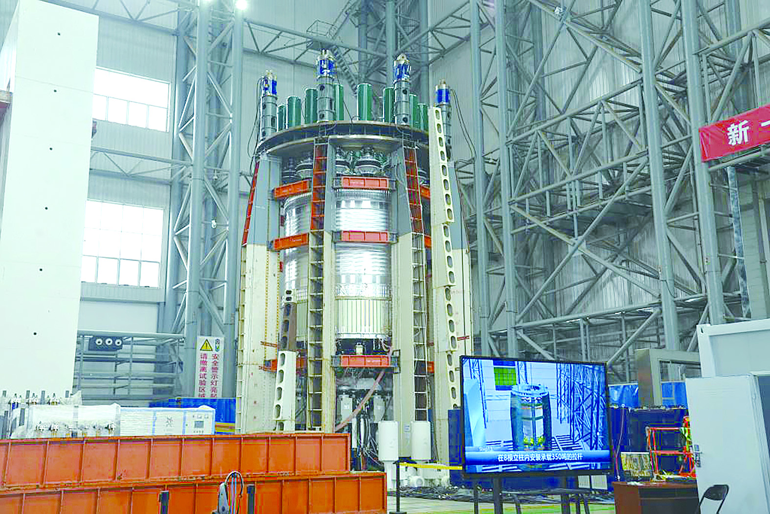 我国新一代载人运载火箭贮箱正在完成多机并联静动联合试验。 (航天科技集团一院供图)