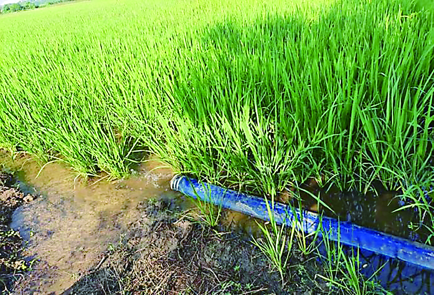 ▲汩汩的水流入干涸的稻田。 株洲日报全媒体记者/俞强年 摄