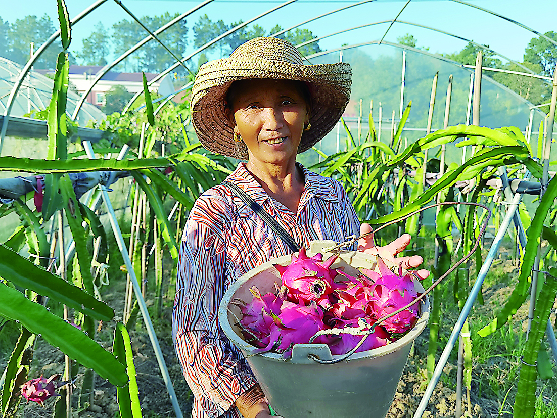 立秋时节,走进芦淞区白关镇卦石村华亿庄园果蔬种植基地,一股清新的果香扑鼻而来,一根根火龙果枝条上挂满了红心火龙果。眼下,本地种植的火龙果陆续采摘,上市售卖。