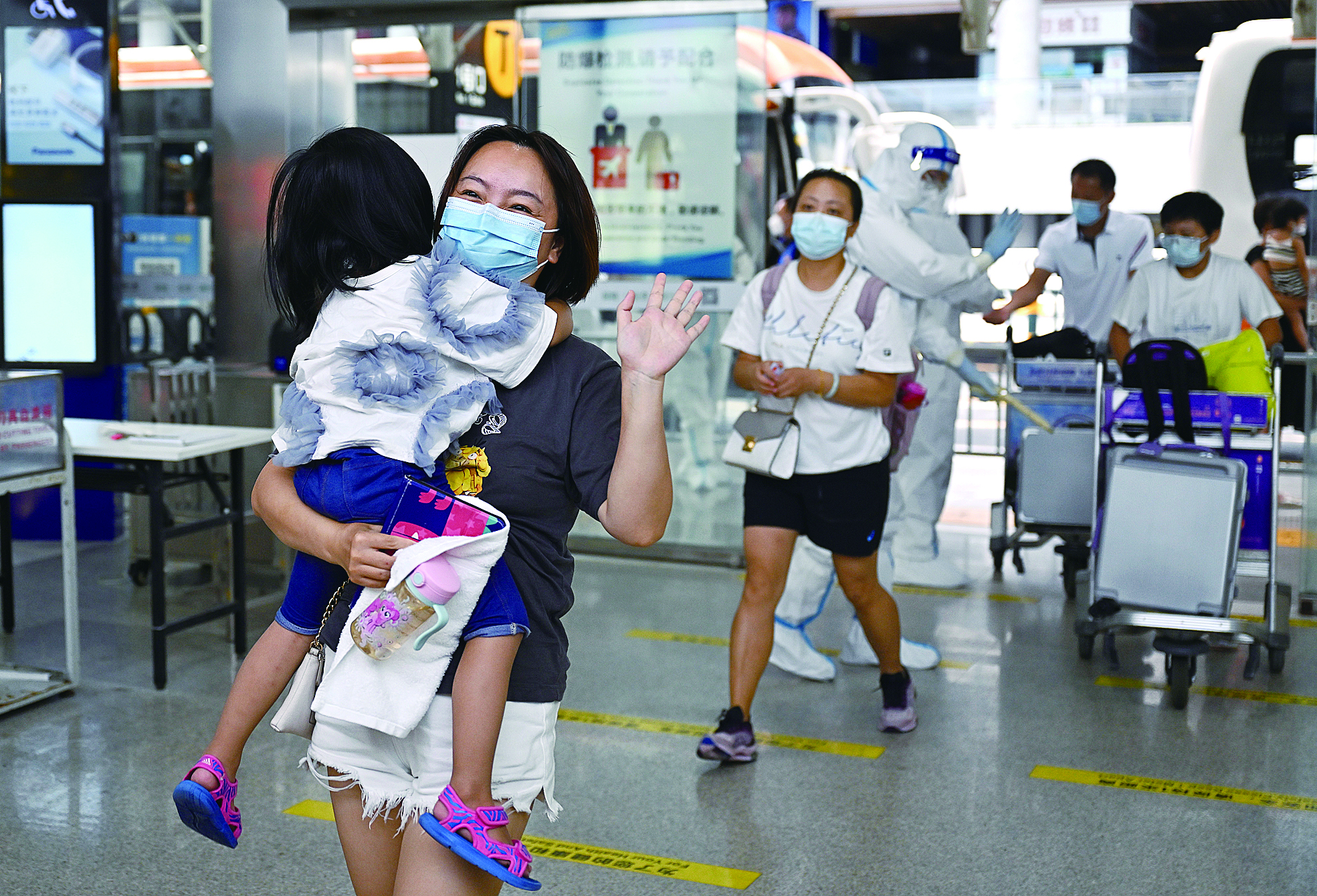 8月9日,滞留三亚的游客进入三亚凤凰国际机场准备登机返程。新华社发