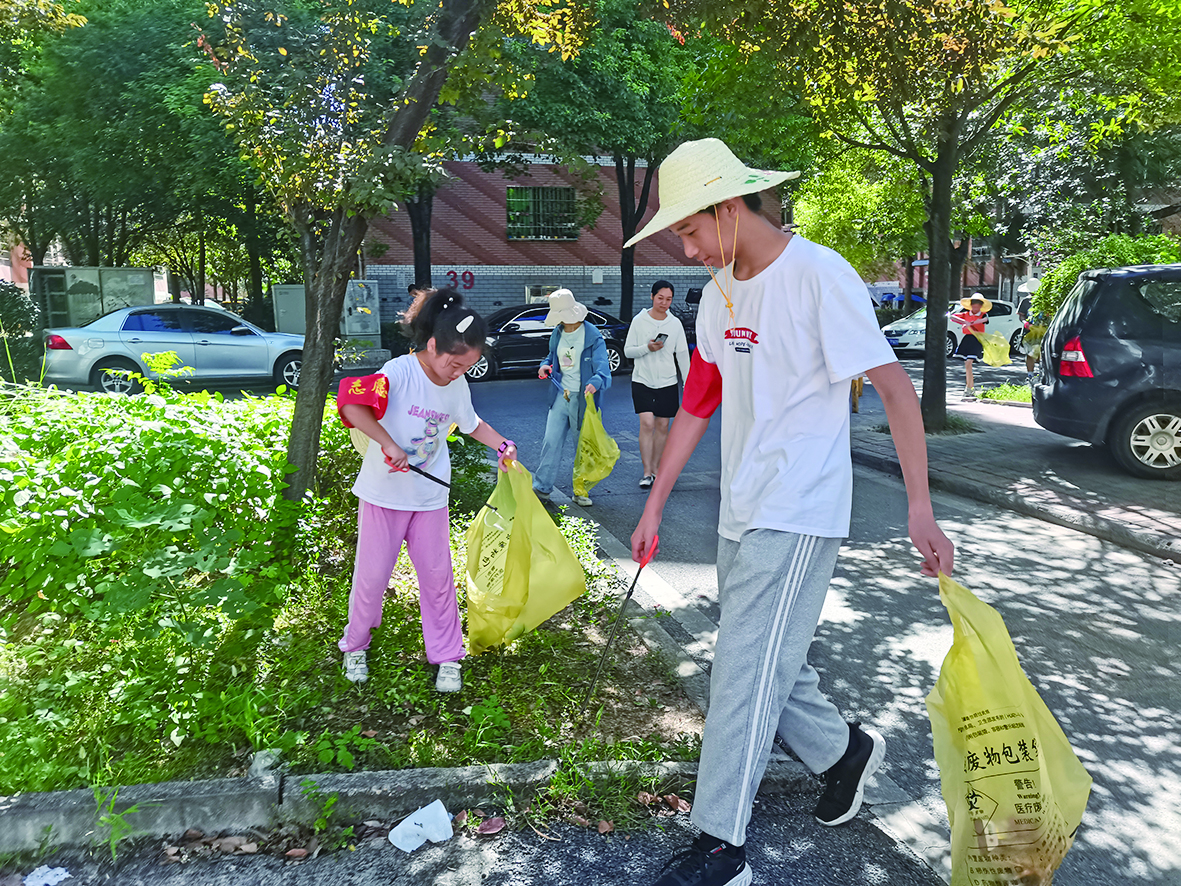 “我家雨萌今天捡了整整两袋垃圾,表现不错,一会儿奖励她一个冰激凌。”金雨萌的妈妈张女士说,孩子在家娇生惯养,很少做家务,参与社区大清洁志愿活动既丰富了孩子的暑期生活,也培养了孩子的环保意识。