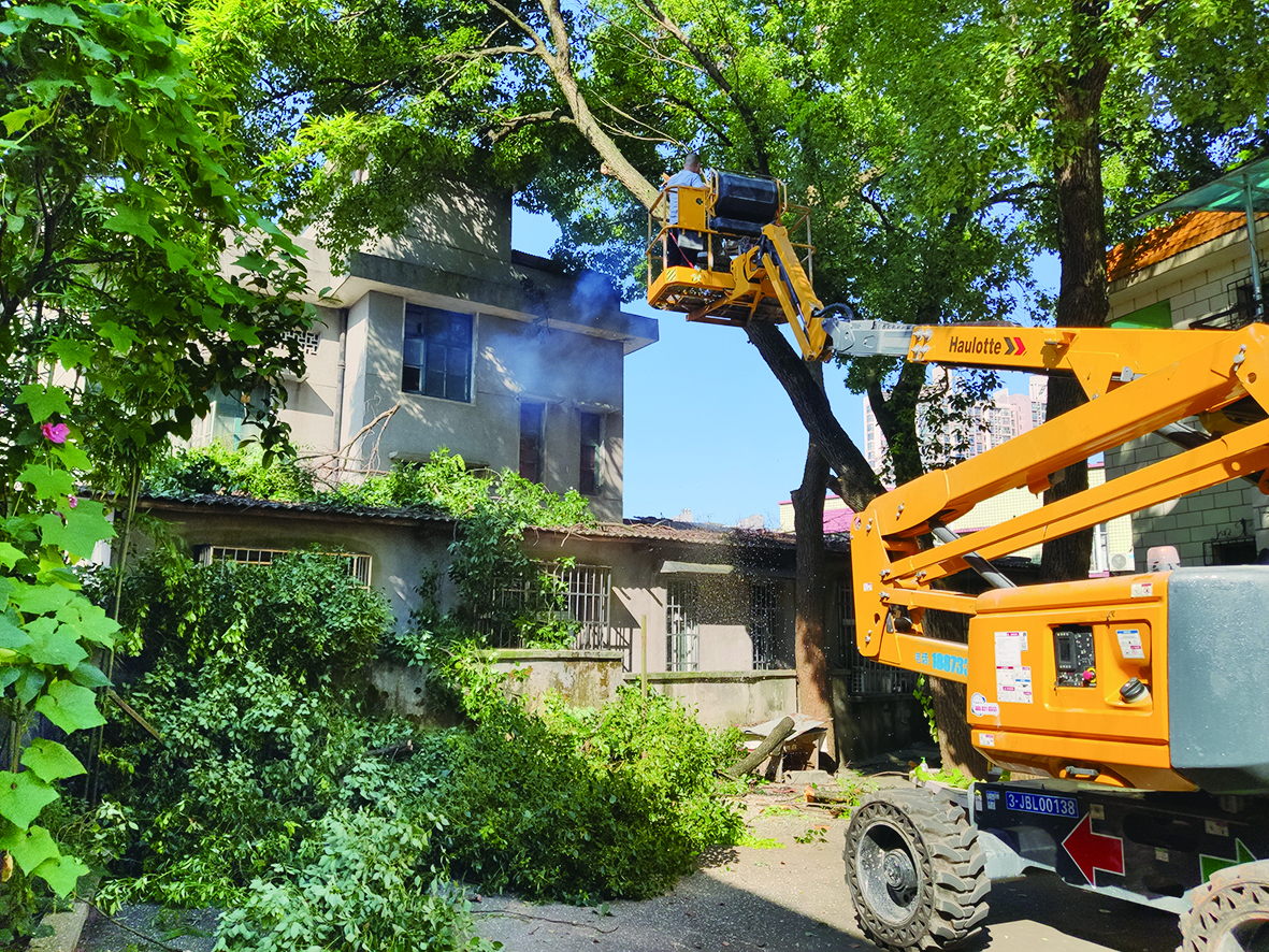 6月以来,天元区城管局园林绿化中心推进文明城市常态长效建设,协助对五一新村、浅塘小区等10余个老旧居民区做好危树枯枝处置,为居民安全保驾护航。
