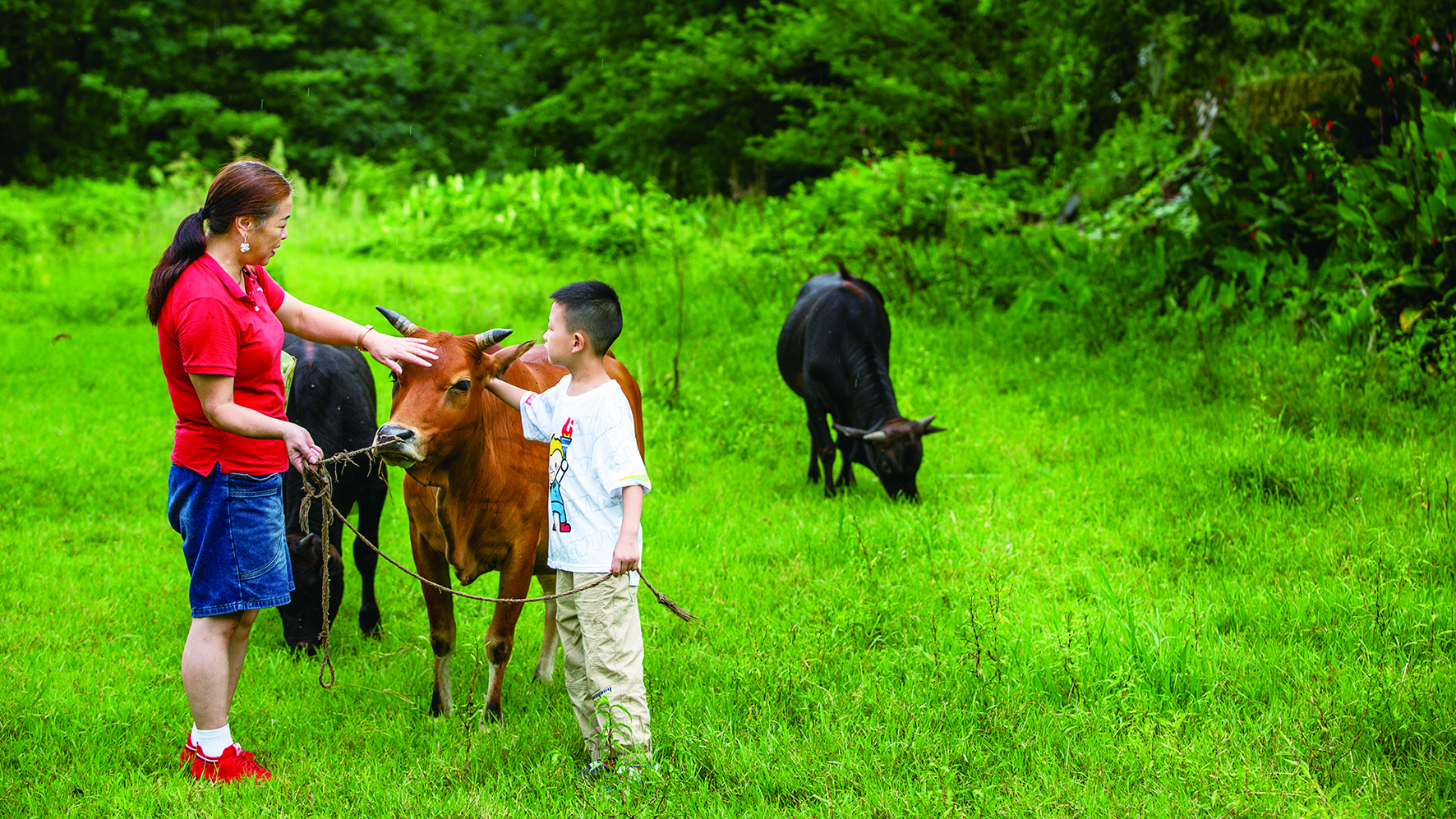 城里孩子与小黄牛。