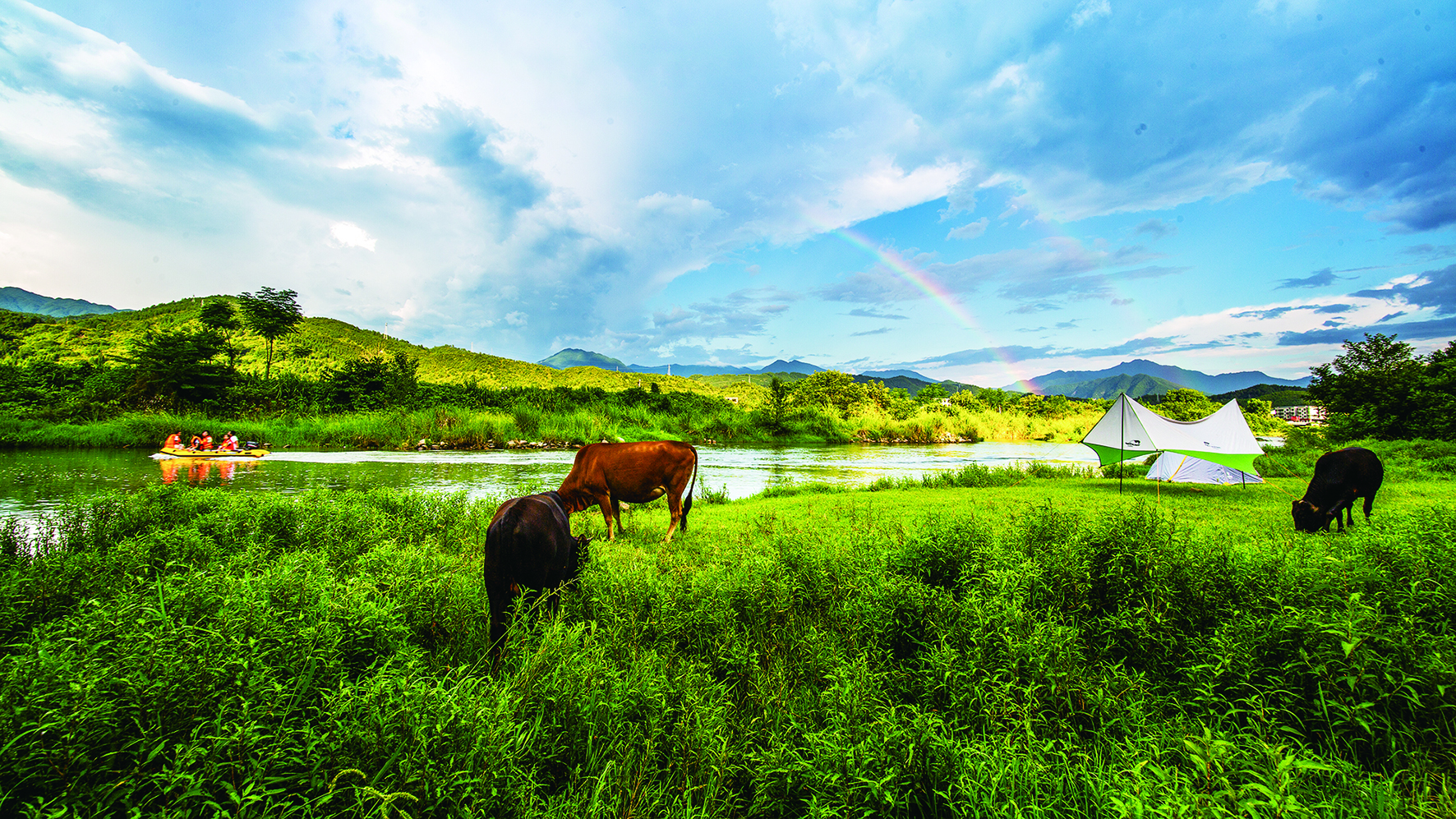 河边喜见彩虹。