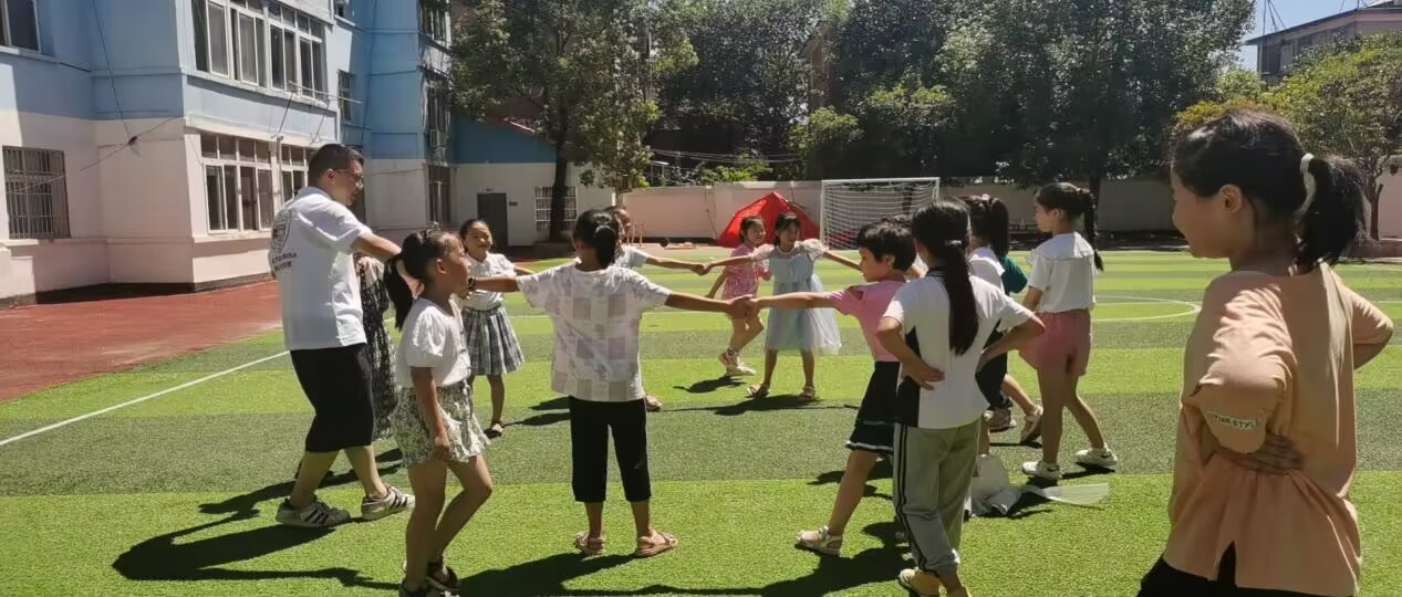 8月13日,湖南大学2022级MBA未来科创企业家班创益同行小组的7名志愿者,来到天元区三门中心小学,他们装扮成各种动物,与孩子们一起唱歌舞蹈玩游戏,关爱乡村留守儿童。