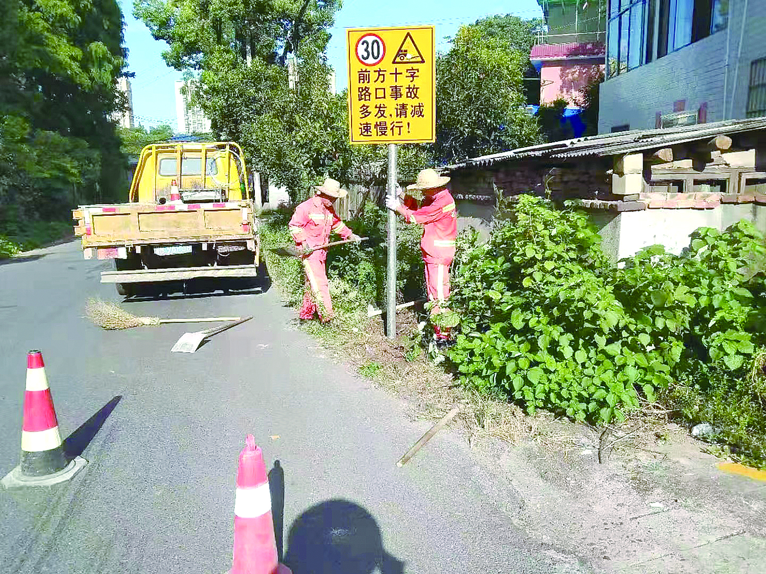 株洲日报讯(全媒体记者/周蒿 通讯员/常剑) 安装减速标志、修补开裂的水泥防护栏、施划减速带……顶着高温酷暑开展安全施工,近日,石峰区全面完成了市交通顽疾整治办交办的农村公路平交路口、路侧险要、穿村过镇等隐患路段安全整治工作,实现完成率100%。