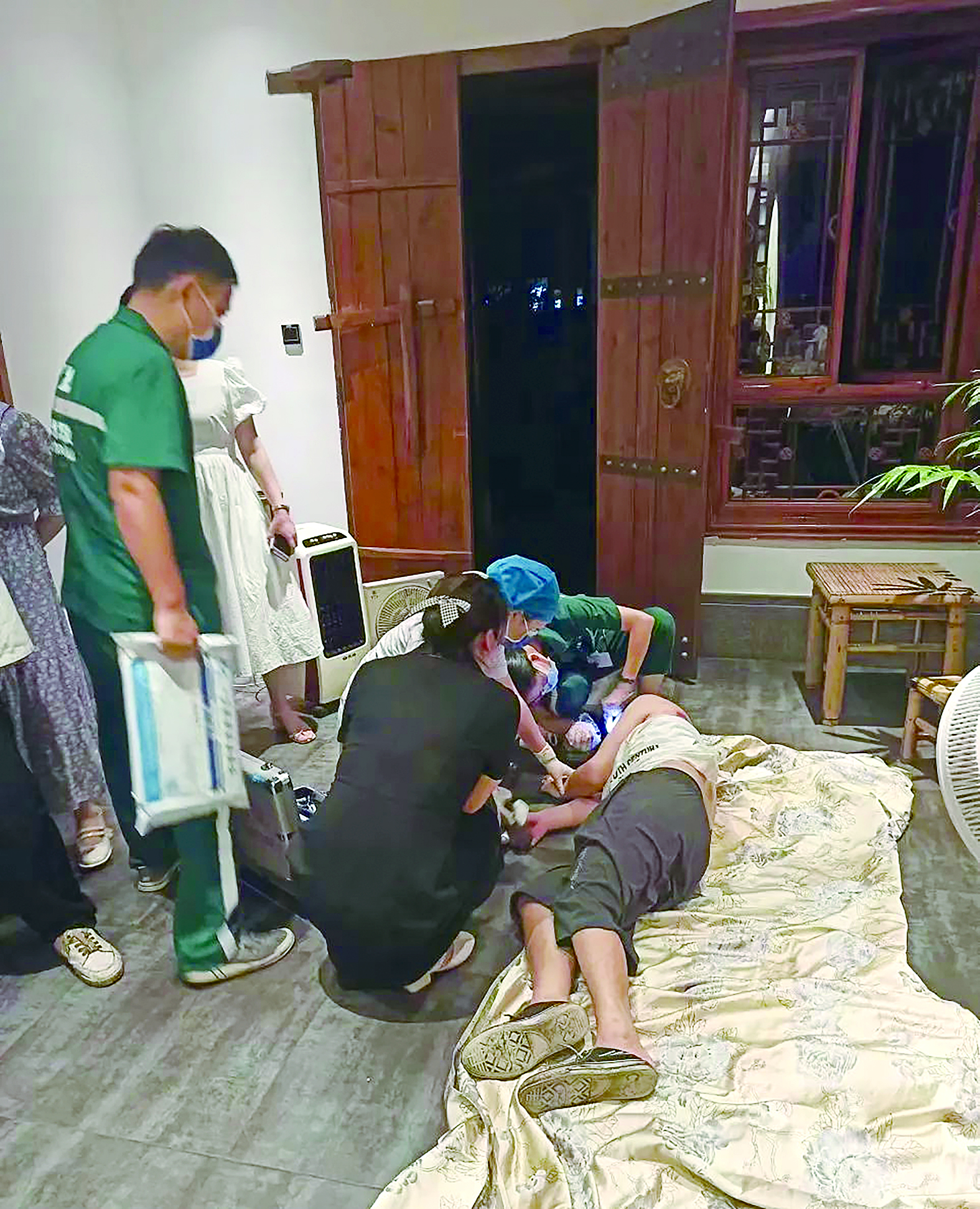 120急救人员正在检查中暑男子的身体情况。 (通讯员供图)