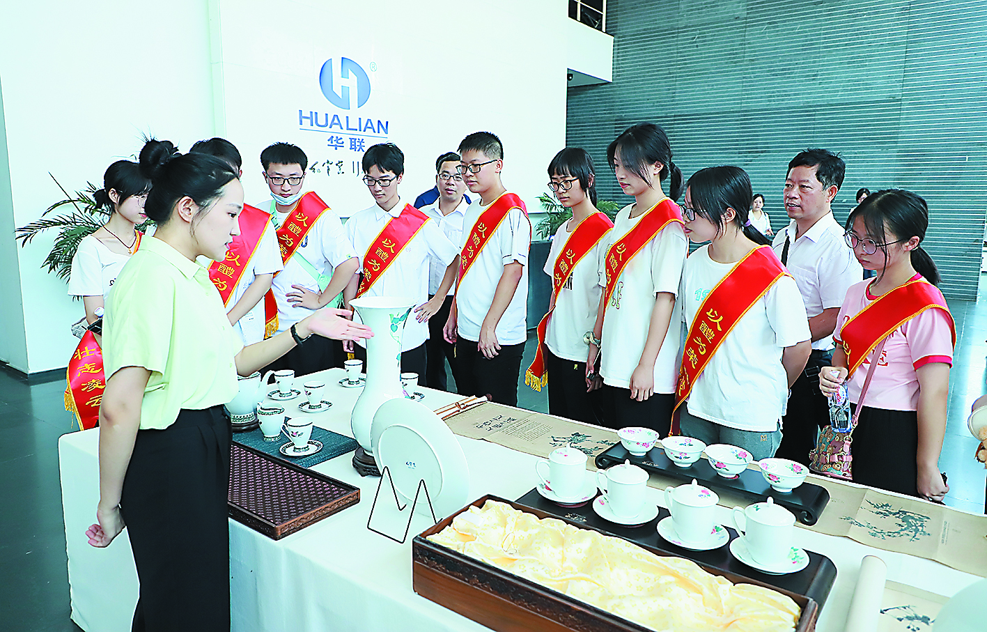 8月18日,醴陵市106名考入“双一流”大学的2022届高三优秀毕业生参加了一场特殊的社会实践活动:远赴他乡求学前,到家乡走一走,感受醴陵陶瓷文化和县域经济发展强劲脉搏。活动以“今日我以醴陵为荣,他日醴陵以我为傲”为主题,准大学生们先后走进华联等知名瓷企和醴陵渌江书院、陶瓷博物馆,了解醴陵瓷的前世今生、企业生产管理和运营方式等。