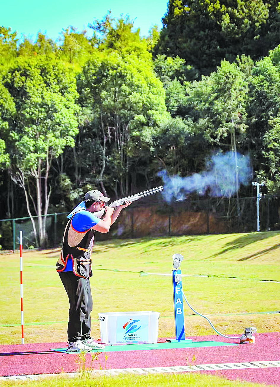 株洲日报讯(全媒体记者/温琳) 8月28日下午,在岳阳市湖南民族职业学院飞碟靶场,2022年湖南省第十四届运动会射击(飞碟)比赛第二个比赛日中,以株洲运动员瞿含为首的省体校队,拿下了U18男子飞碟双向团体金牌,这是瞿含在省运会的首枚金牌。