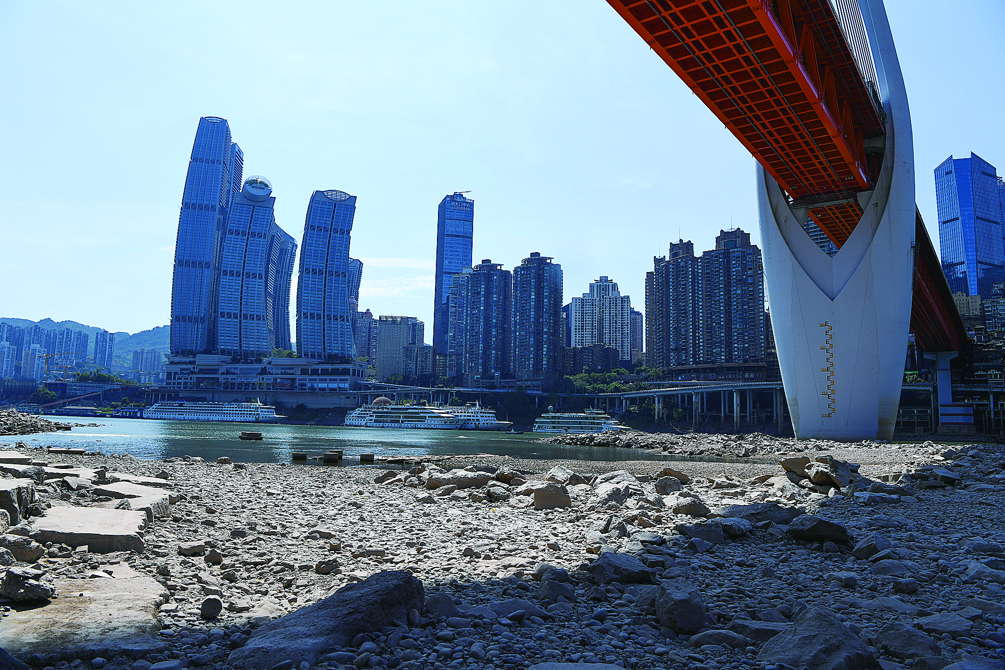 这是8月17日拍摄的重庆嘉陵江千厮门大桥一带景象。 新华社发
