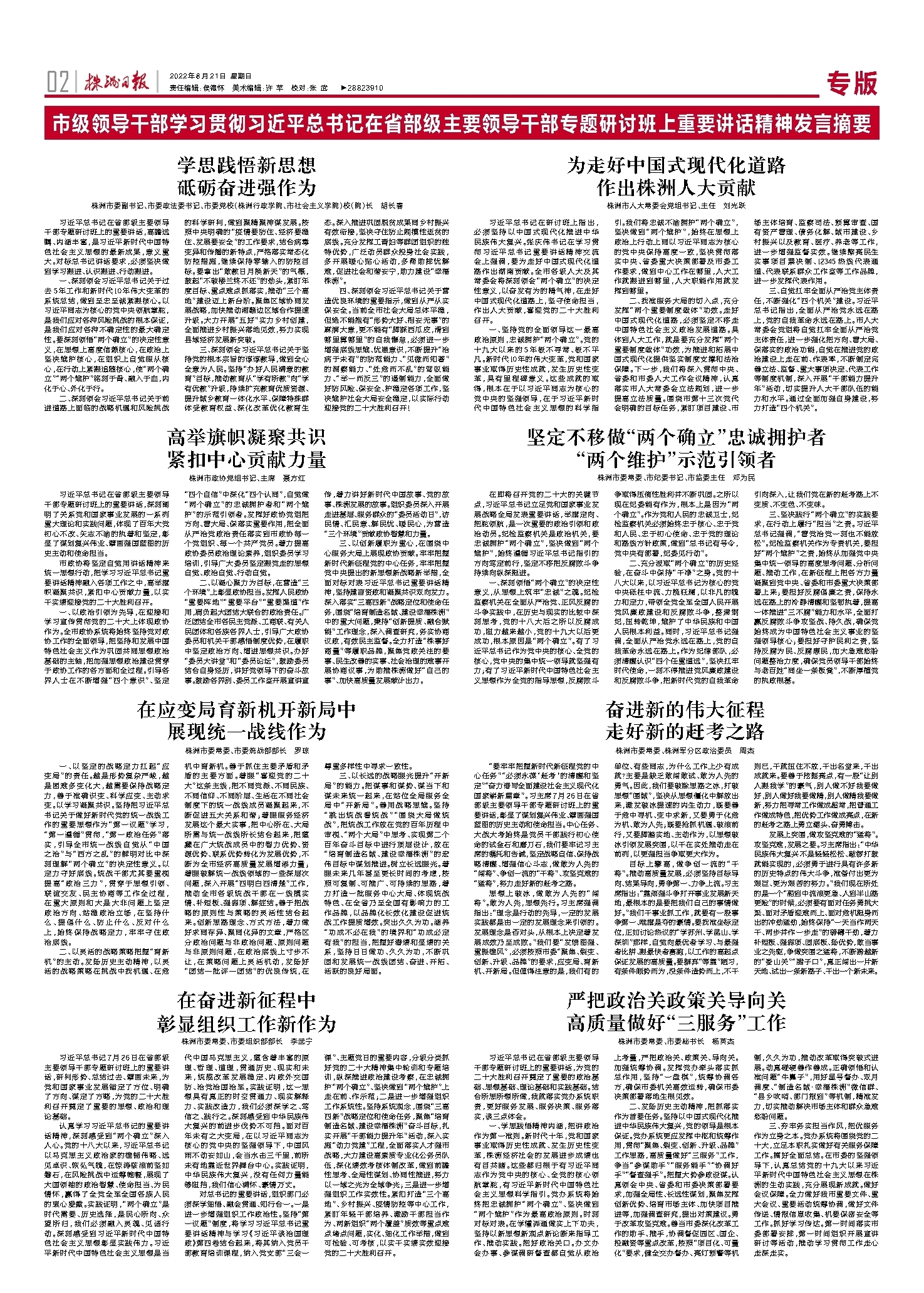 三、深刻领会习近平总书记关于坚持党的根本宗旨的谆谆教导,做到全心全意为人民。坚持“办好人民满意的教育”目标,推动教育从“学有所教”向“学有优教”升级,持续扩充教育优质资源、提升城乡教育一体化水平、保障特殊群体受教育权益、深化改革优化教育生态。深入推进巩固脱贫成果同乡村振兴有效衔接,坚决守住防止规模性返贫的底线。充分发挥工青妇等群团组织的独特优势,广泛动员群众投身社会实践,多开展暖心贴心活动,多帮助排忧解难,促进社会和谐安宁,助力建设“幸福株洲”。