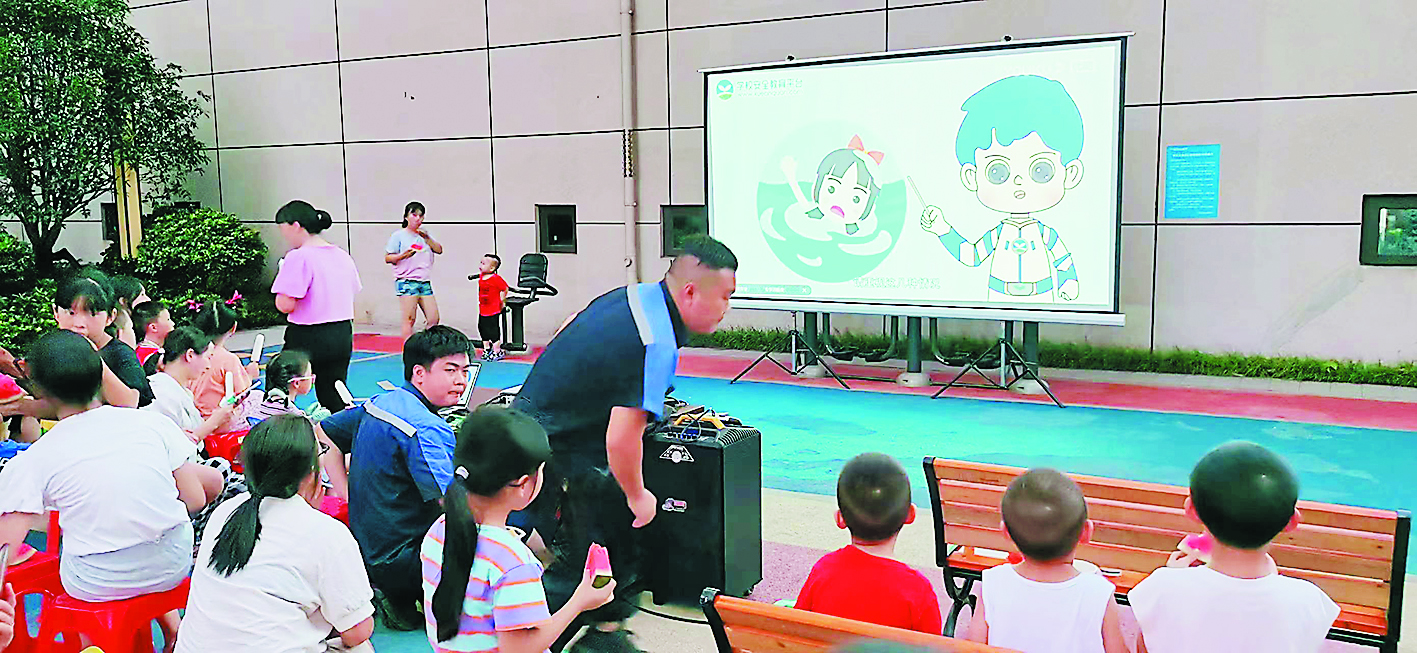 电影开幕前,社区工作人员早早地在现场布置了免费的老冰棍、自制的酸梅汁、西瓜等,并播放了暑期防溺水儿童安全教育视频,让大家在欢快中不忘共同学习安全知识。