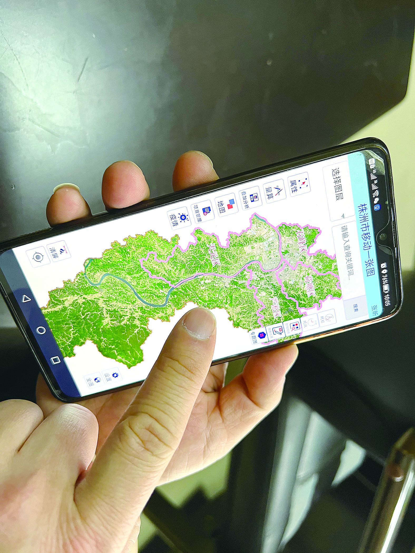 通过手机后台,可以一览我市全域耕地保护情况。 记者/张威 摄