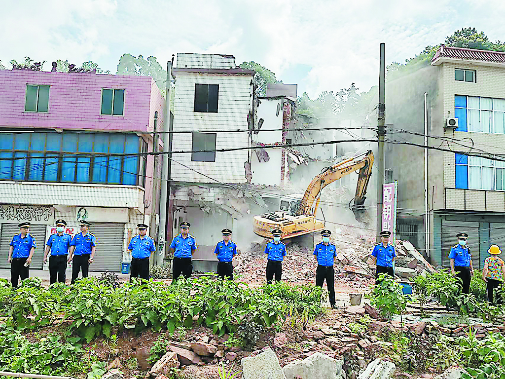 拆违现场,治违队员维持秩序,确保安全。株洲日报通讯员/赵腾宇 供图