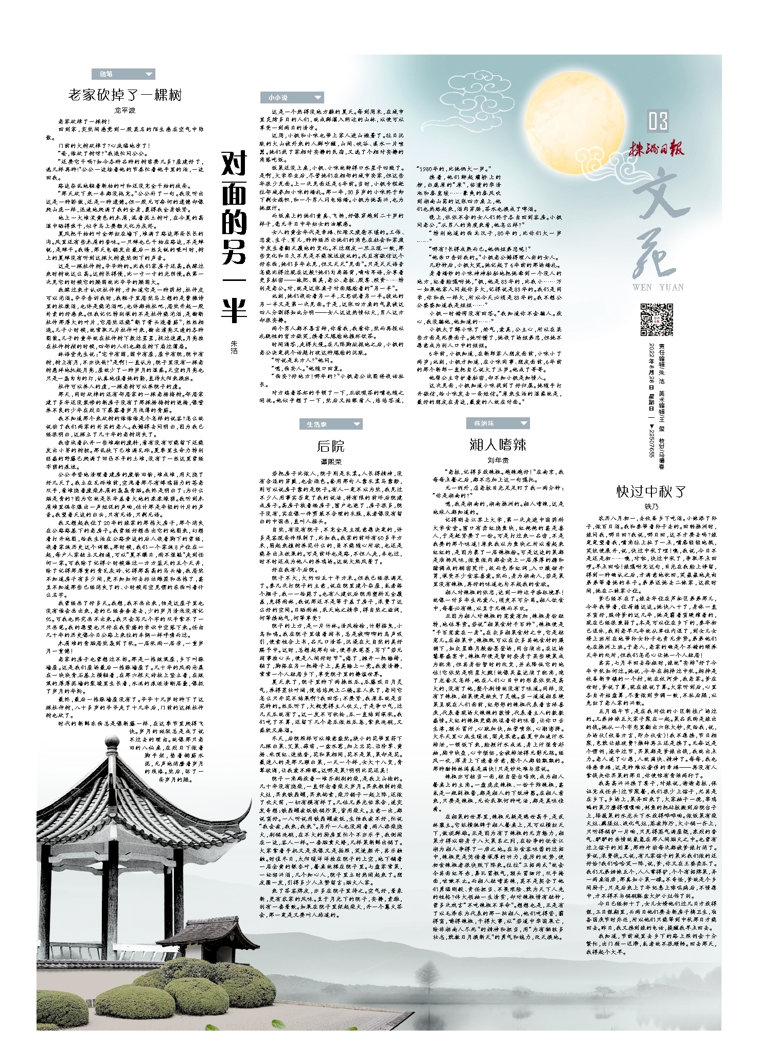 林语堂先生说:“宅中有园,园中有屋,屋中有院,院中有树,树上有月,不亦快哉?”是啊!一直认为,院子里没有一棵老树慈祥地托起月亮,屋就少了一种岁月的温柔。天空的月亮也只是一盏匆匆的灯,认真地值着她的勤,直待太阳来换班。