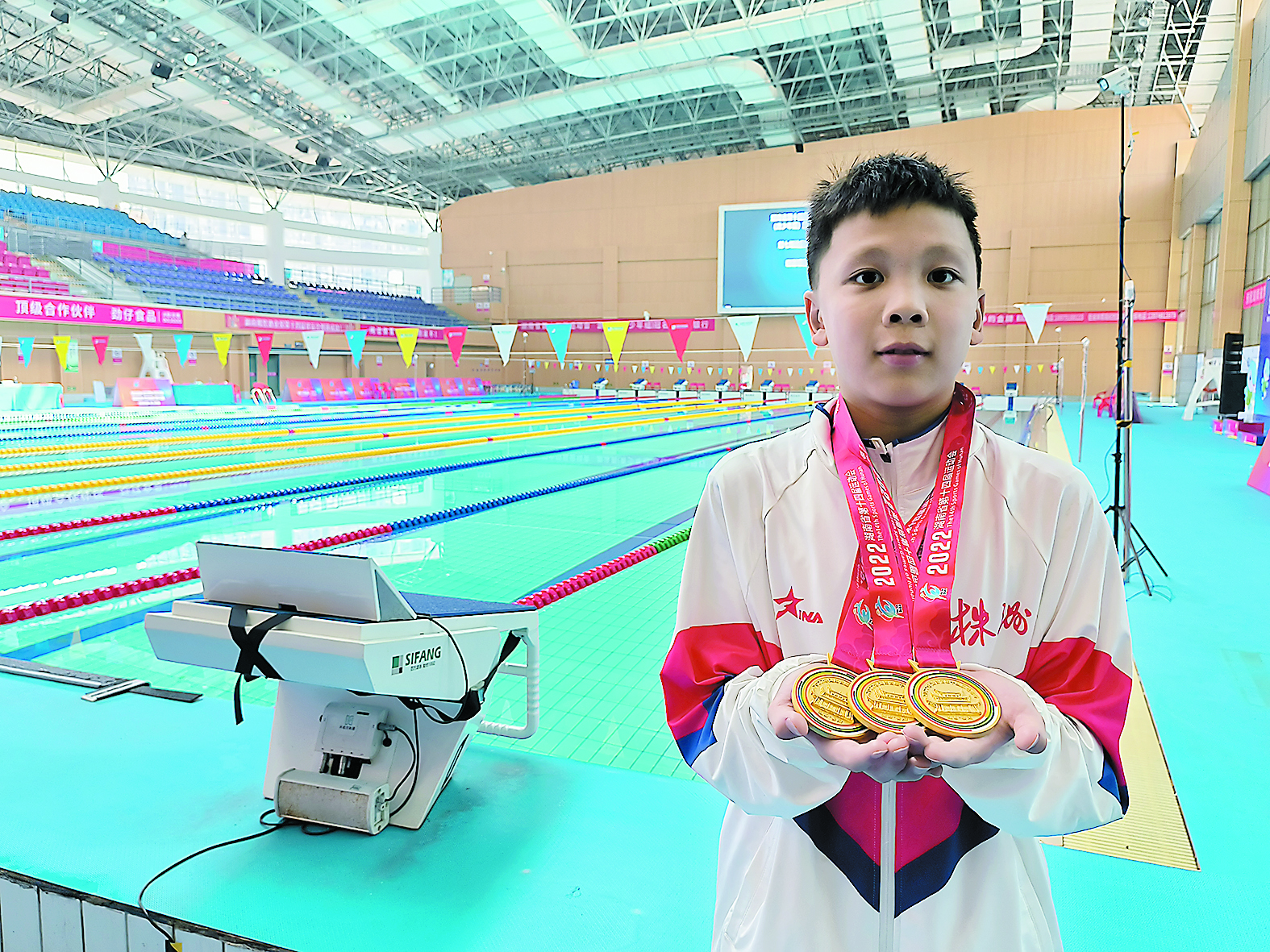 省运会上,游泳小将宋泯臻四天独揽三金。记者/温琳 摄
