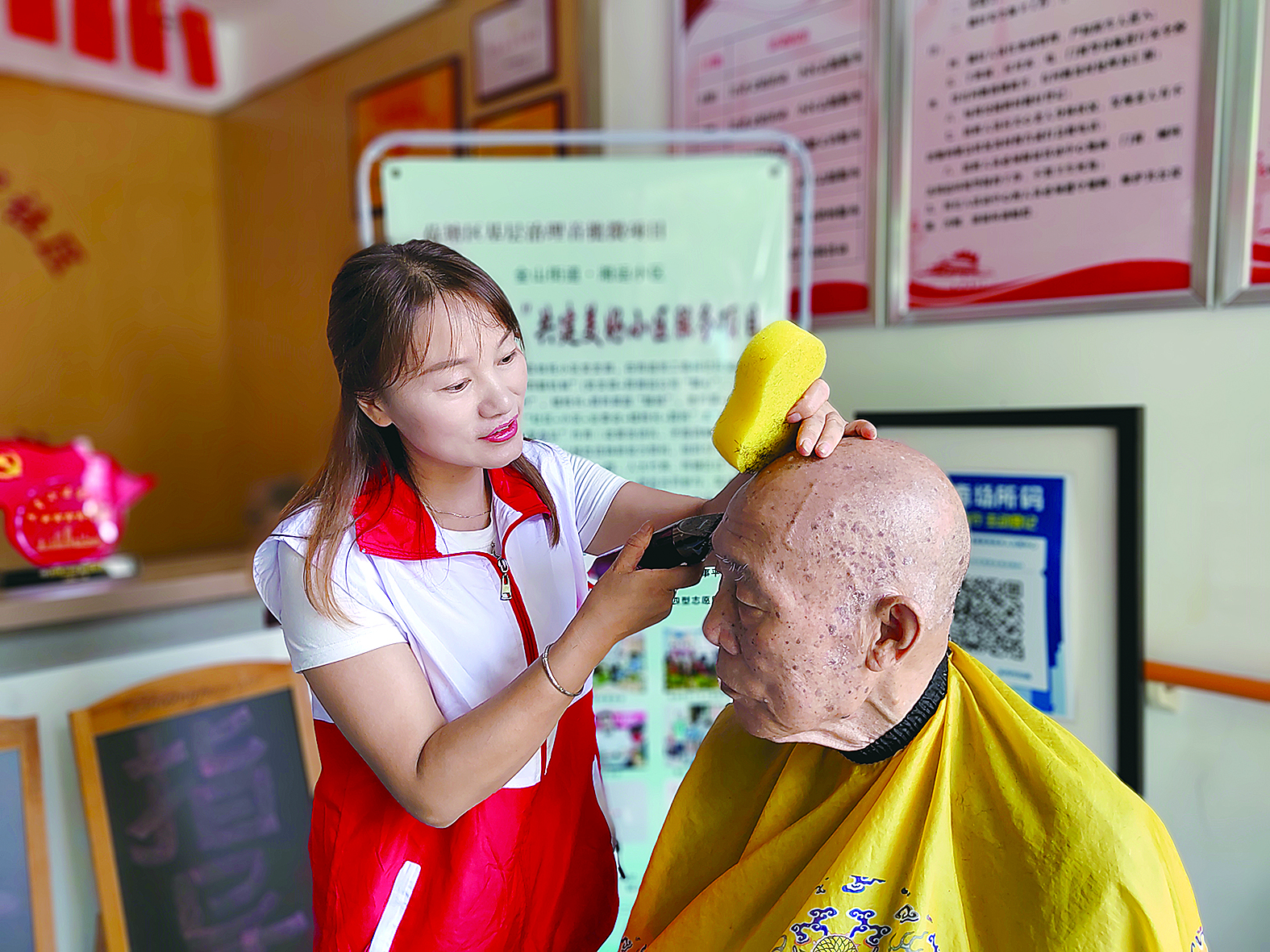自2019年启动“爱心齐孝·情暖夕阳”项目,市红十字会持续4年开展关爱社区、养老机构孤寡、困难老人系列活动,志愿服务覆盖6个社区、12家养老机构,为800名老人送去了关爱和温暖。图为志愿者在为独居老人理发。
