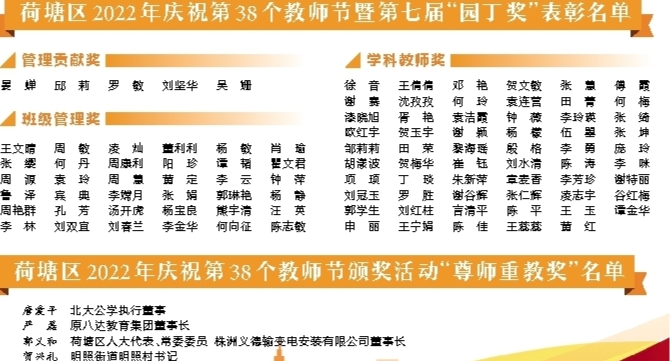 “在荷塘区,每年教师表彰大会绝对是最盛大的,区领导一定会参加,仪式感满满,我们觉得特别幸福也格外光荣。”太阳小学教师杨檬激动地说。