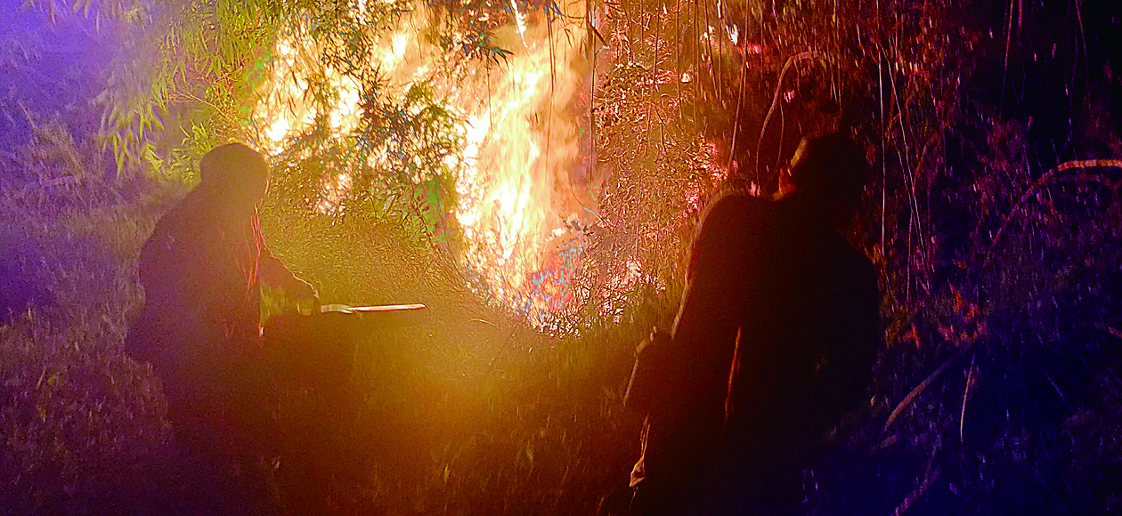 为防止火势进一步蔓延,杨远鹏强忍着皮肤灼烧感和肌肉酸痛,带领队员们奋力扑打。当晚8点多,现场明火被成功扑灭。