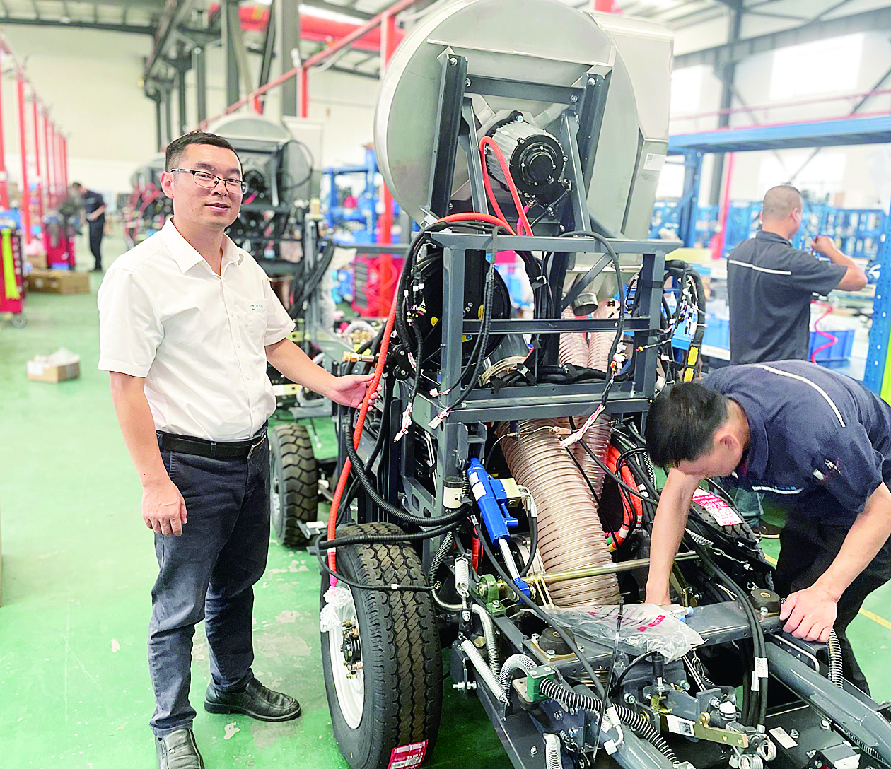 “我们自主研发的纯电动多功能清扫机,采用纯真空吸扫作业方式,可在夏天、雨雪天作业,适用于城市主次干道、人行道及背街小巷的机械化清扫保洁,以及大型社区、校园、小区、广场及旅游景区等内部道路场地清扫。”说到清扫机的优势,阳衡如数家珍。