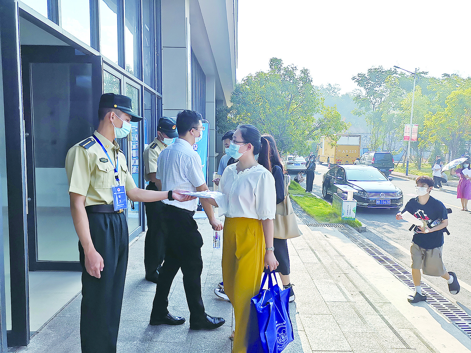 为积极应对新冠肺炎疫情,确保广大应试人员和考务工作人员的生命安全和身体健康,记者在现场看到,考生均佩戴口罩,凭身份证、准考证和湖南省居民健康码、通信大数据行程卡绿码以及48小时内核酸检测阴性证明入场,经过体温检测、健康扫码等环节后,井然有序地进入考场。考场监控室内,监控大屏实时滚动各考场画面,确保考试安全顺利进行。在考试现场外围还有国网株洲供电公司派出工作人员组成保电应急处置组,在考点周围实地蹲点守电,无线电监管车、消防车和救护车也在考场外“守候”。
