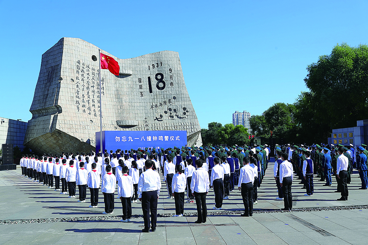 今年是九一八事变爆发91周年。9月18日上午,勿忘九一八撞钟鸣警仪式在沈阳“九一八”历史博物馆残历碑广场举行。 新华社记者 杨青 摄