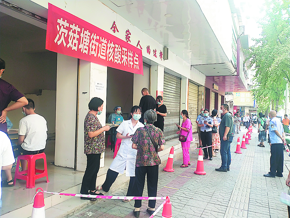 荷塘区钻石路小区长风门核酸采样点秩序井然。 株洲日报全媒体记者/廖智勇 摄