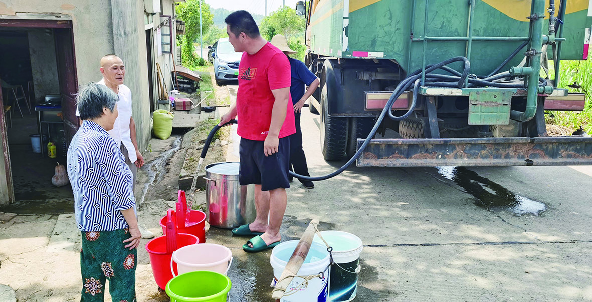 “水已经送来了,需要接水的老百姓,可以拿上你们的水桶来接水。”还有村民义务开着运输车,免费送水进社区,伴随着喇叭声里传来生活用水已送到的消息,村道上陆陆续续出现了村民拿着桶赶来的身影。