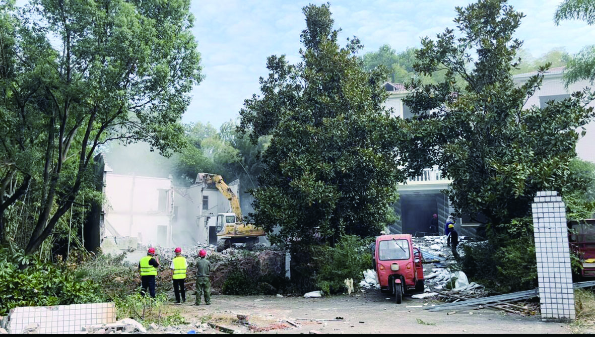 执法人员依法拆除违建房屋。 记者/周蒿 摄