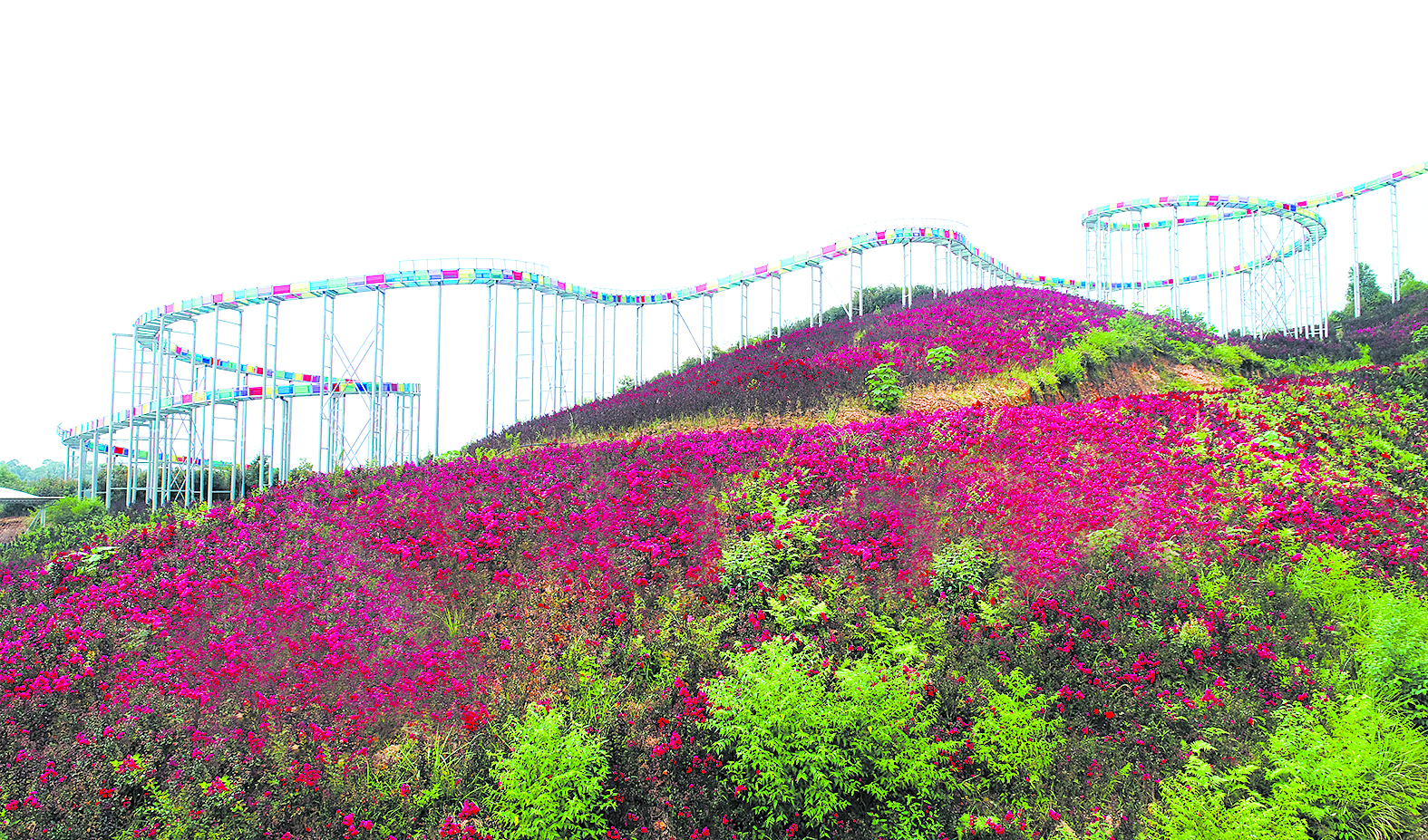 2017年。茶陵县践行“绿水青山就是金山银山”理念,积极招商引资,发展生态农业,狗垅里采煤场被政府部门列为招商项目。当年,湖南虎源生态园林有限公司董事长李乐文敢为人先,在此开发“茶乡花海”生态健康产业园项目。6年来,他筹资建成了云阳山大峡谷茶乡花海生态旅游区。自2019年开放后,该景区吸引了茶陵及周边县市的游客纷至沓来,年接待游客超10多万人次。旅游红火,也带动周边村民来景区务工就业。