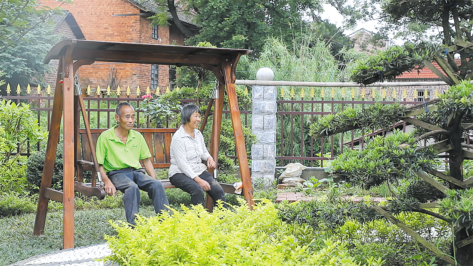 ◀秀美庭院成为村民休闲乐园