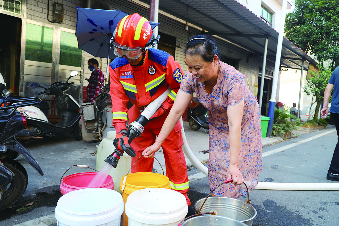 株洲日报讯(全媒体记者/马文章 通讯员/陈佳) 受持续高温影响,我市多地不同程度出现生活用水难、庄稼缺水问题,不少居民向消防部门求助。消防员化身“送水工”,解决群众燃眉之急。