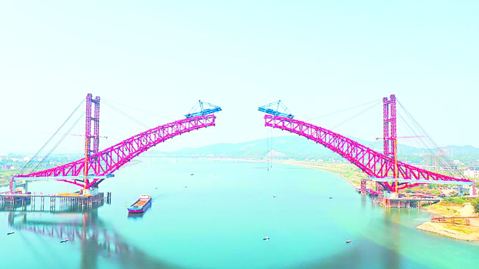 由中交三航局承建的株洲清水塘大桥,连接清水塘生态科技产业新城与栗雨工业园区,主桥为中承式钢桁架拱桥,跨径为100+408+100米,位列同类型桥梁世界第六位、中国第三位。施工工艺复杂、精度要求特别高,项目部不但任务重而且工期紧。目前,项目已加大设备、人力投入,倒排工期,错高温、轮班换,确保建设进度有条不紊地向前推进。