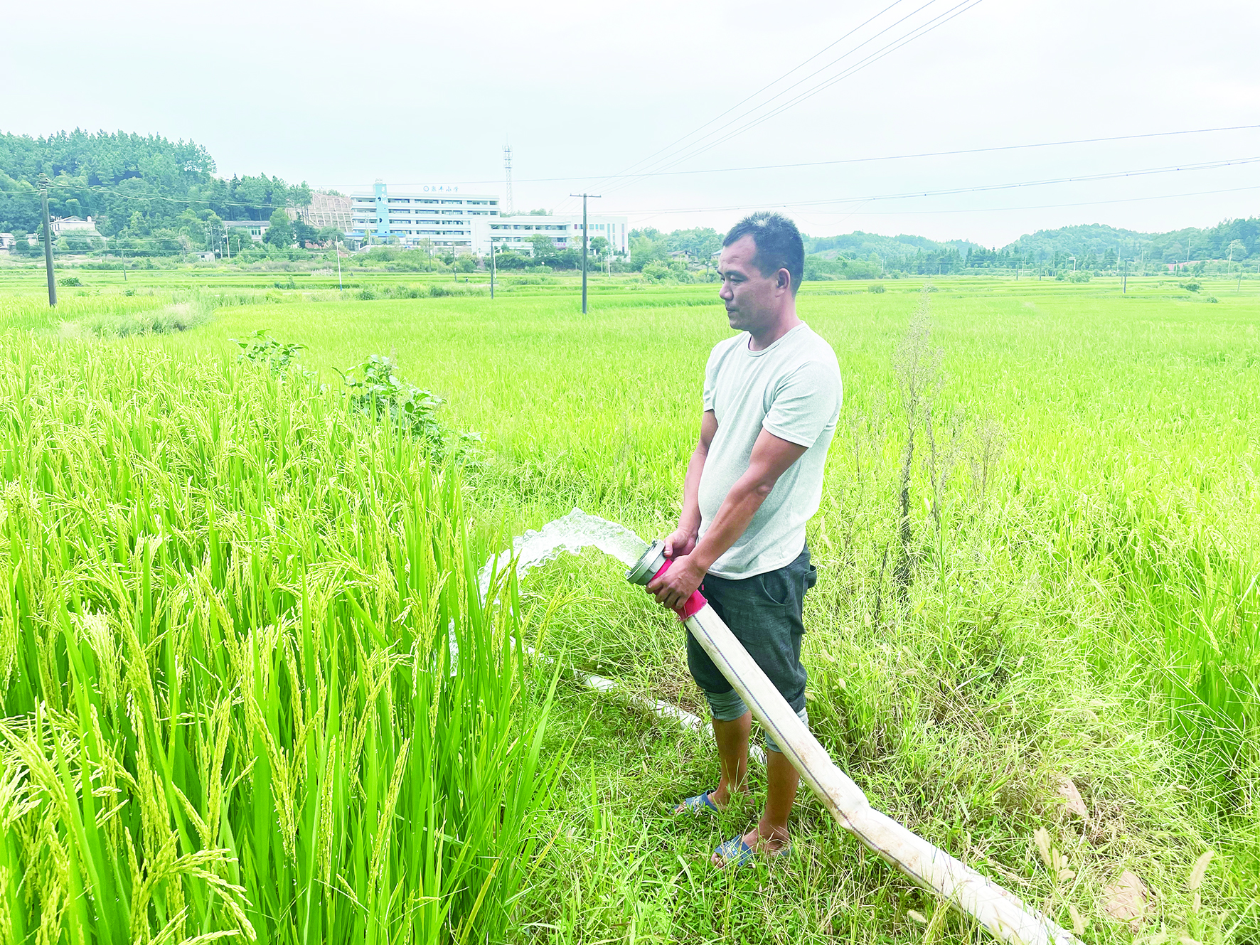 先锋村党委书记郭起红介绍:“村里共有800多亩稻田,持续的高温少雨天气,导致农作物生长受到不同程度影响,全村党员干部和志愿者积极行动起来,正千方百计把水送到田里,全力抗旱保丰收。”