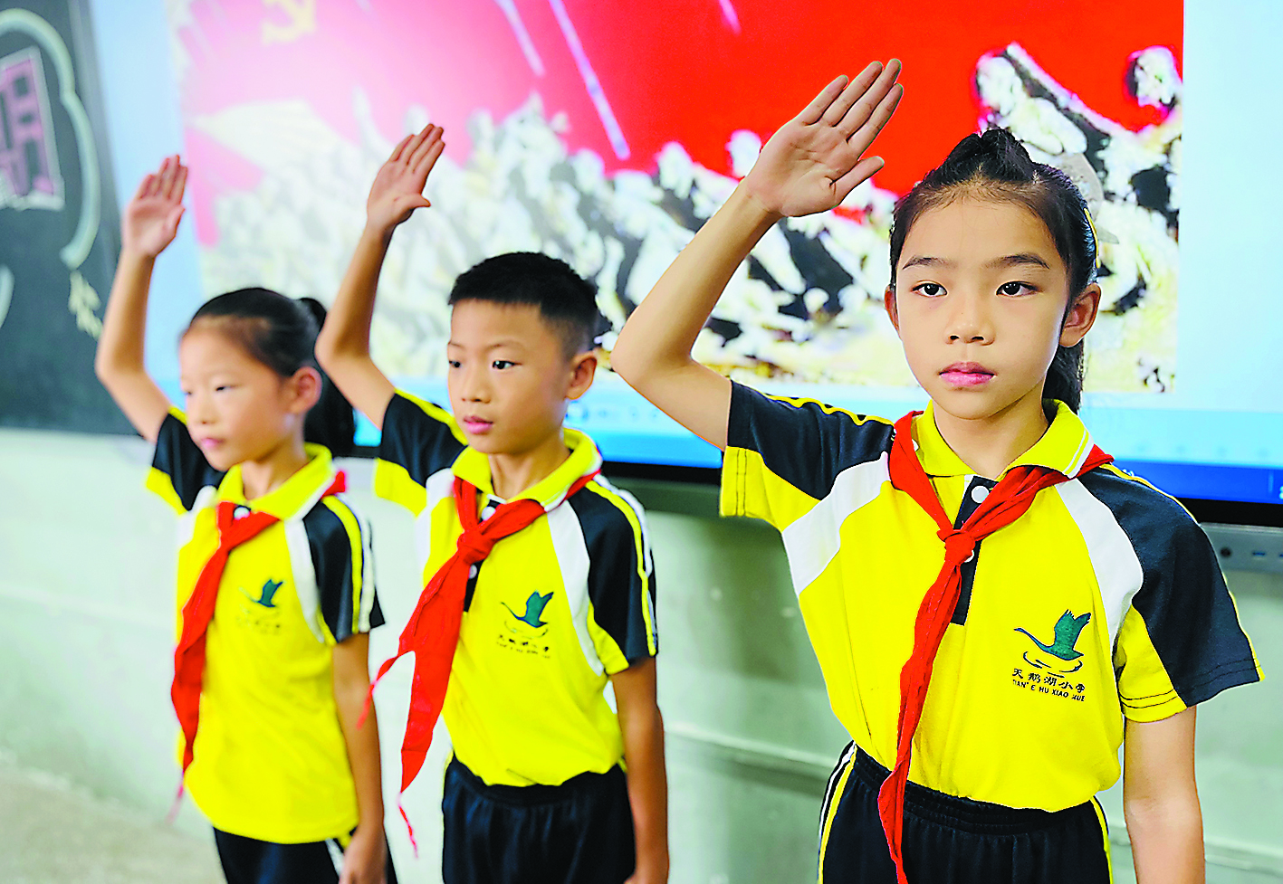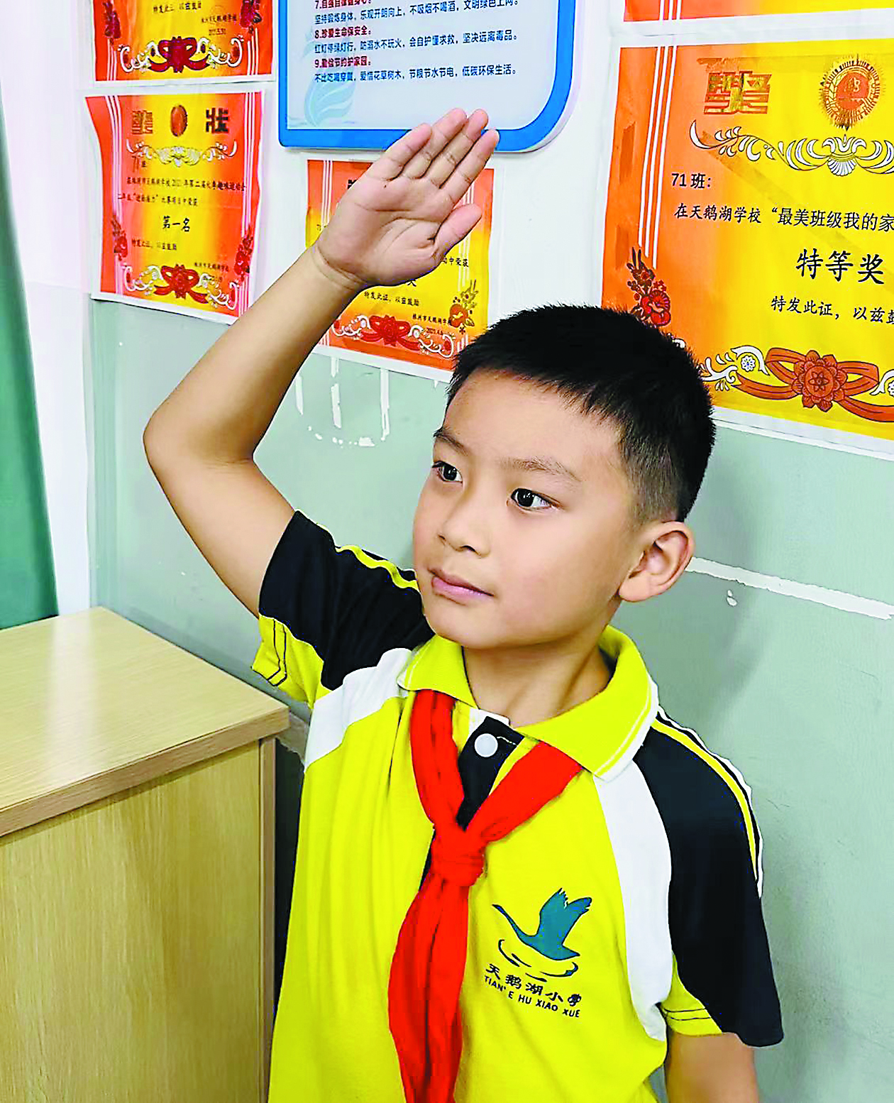 ▲天鹅湖学校学生向抗战老兵致敬 天鹅湖学校/供图