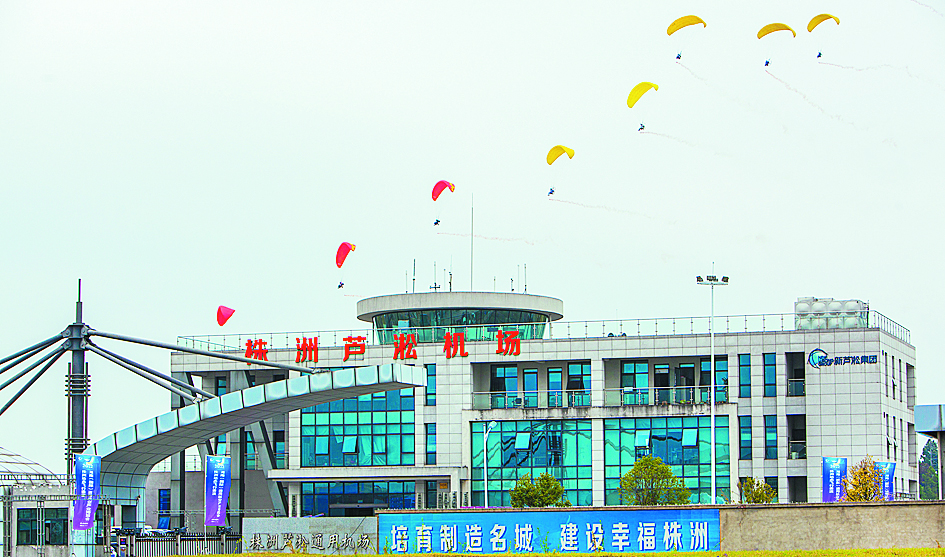 滑翔伞掠过芦淞机场上空。 秦世平 摄