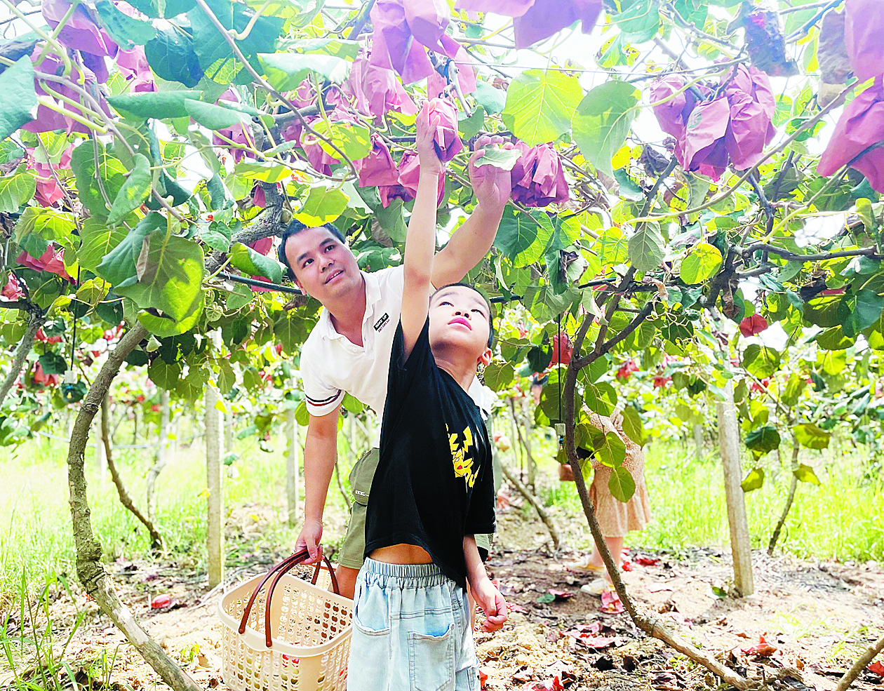 猕猴桃基地,游客正在采摘。 记者/杨如 摄